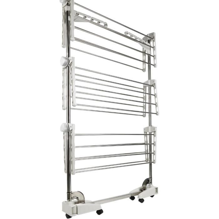 Capacité 35kg LANTUS Séchoir à Linge Pliable Avec Roulettes Grande Capacité Etendoir En Acier Inoxydable Ailes Pliables Sur 3 Niveaux De Séchage Pour Usage Intérieur/Extérieur (75 * 64 * 170cm-noir Et Blanc Support Linge 35 Kg ✩♻️ [ Utilisations multiples ] ― ce séchoir à linge est adapté pour une utilisation en intérieur et en extérieur. Etendoir linge pliable : la sélection produits Leroy Merlin de ce vendredi au meilleur prix ! Retrouvez ci-après nos 1121 offres, marques, références et promotions en stock prêtes à être livrées rapidement dans nos magasins les plus proches de chez vous LANTUS Séchoir à Linge Extensible Grande Capacité Tour de Séchage d'Étendage Étendoir Vertical Multifonction pour Intérieur et Extérieur -75 x 64 x 170 cm (Noir ✩♻️ [ CONCEPTION VERTICALE POUR GAGNER DE LA PLACE ] ― Maximisez votre espace de vie avec ce séchoir à linge haut, parfait pour les petits appartements, balcons et chambres d'étudiants. Lorsqu'ils ne sont pas utilisés, les étagères peuvent être pliées pour économiser de l'espace. LANTUS étendoir Linge Intérieur sur 3 Niveau, Séchoir à Linge ✩♻️ [ 3 NIVEAUX & LARGEUR EXTENSIBLE ] ― Le LANTUS dispose de 3 niveaux ajustables et d'une largeur extensible pour s'adapter à différentes quantités de linge. Taille élargie : (75-126)*64*170 cm Diamètre du tuyau: diamètre du tuyau 19., /12,7 mm Le design stable garantit que vos vêtements sèchent en toute sécurité et efficacement, offrant une aide-ménagère fiable pour votre maison. Vous pouvez le sécher à plat pour protéger vos vêtements contre l'étirement et la déformation., 6., Vous pouvez ajuster vous-même le nombre de supports pour vous adapter à différents groupes de personnes ✩♻️ [ FACILE À DÉPLACER AVEC 4/6 ROULETTES ] ― Équipé de 4/6 roulettes robustes, ce séchoir à linge peut être déplacé sans effort dans votre maison. La structure verticale vous permet de sécher plus de vêtements sur moins d'espace, ce qui en fait une solution peu encombrant., 🏢 Support de poids: 35kg