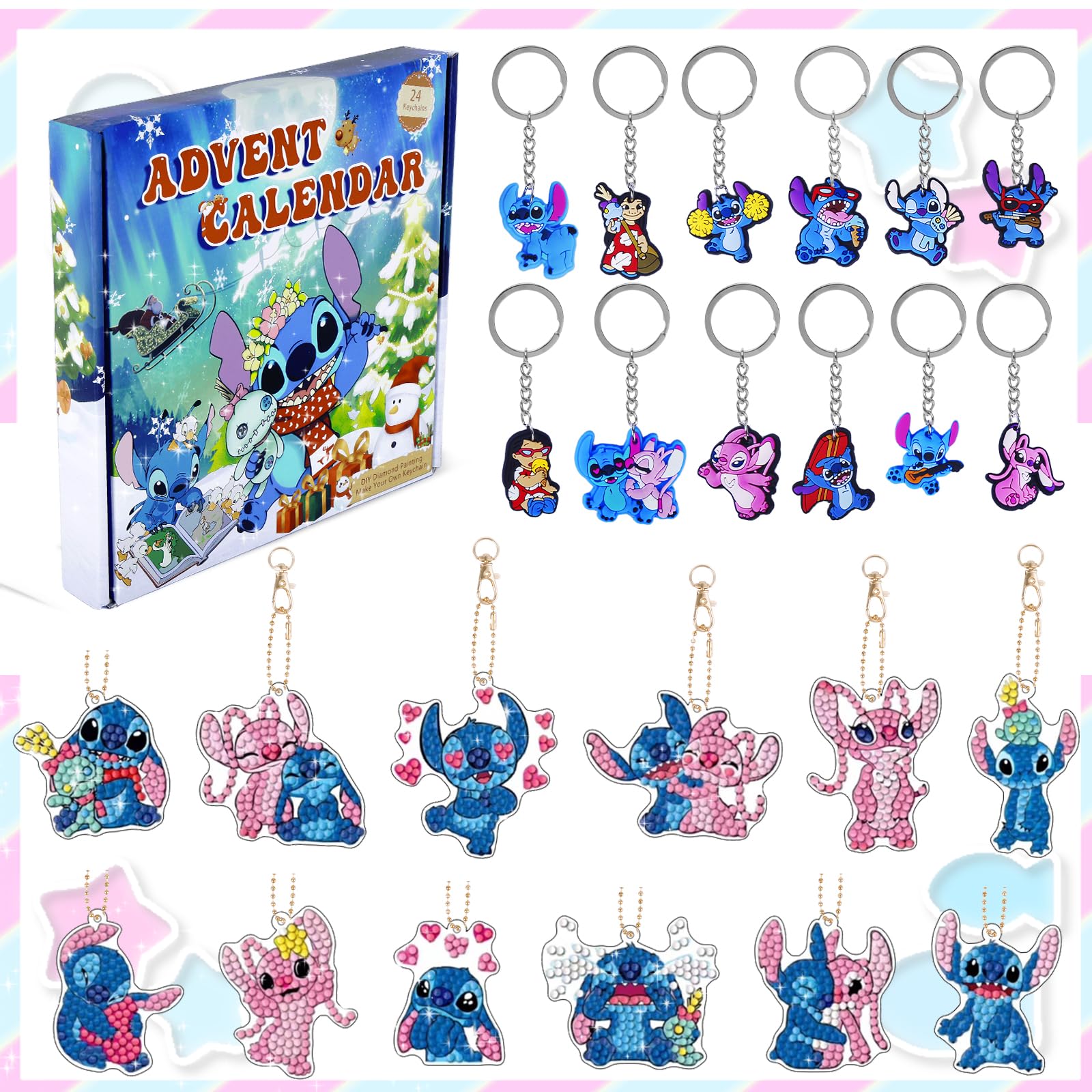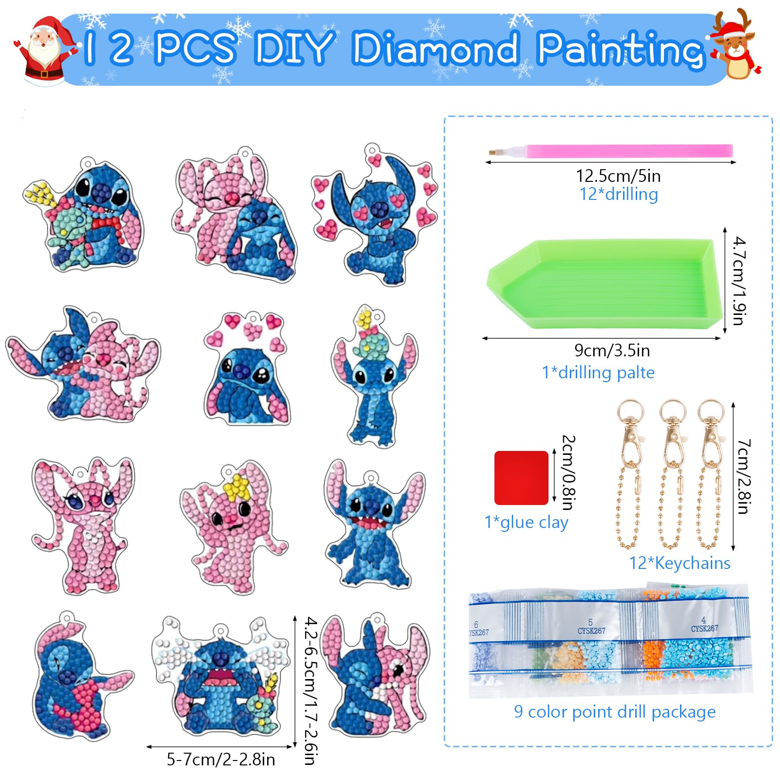 Calendrier 24 Jours Porte-clés PVC Calendrier De L'avent 2024, 12 DIY Diamond Painting Porte-clés Et Calendrier Avent Lego 2025 Il peut être utilisé pour une variété de décorations, y compris pour accrocher à des clés, portefeuilles, téléphones portables, sacs à dos, sacs à main. Les porte-clés avec peinture diamant peuvent être utilisés comme étiquette de cadeau, étiquette de vœux, pendentif de Noël, etc. L'ensemble de pendentifs de peinture diamant de Noël est parfait pour décorer les arbres de Noël, les maisons et les salles de classe CALENDRIER DE L'AVENT : Le calendrier de l'Avent contient 24 porte-clés de peinture diamant de Noël différents avec les outils correspondants, idéal pour le compte à rebours quotidien jusqu'à Noël Matériau sûr : notre porte-clés est fabriqué en résine respectueuse de l'environnement et en PVC, non toxique et inodore, doux et durable, respectueux de l'environnement et pas facile à décolorer ou à déchirer et peut être utilisé pendant longtemps. Choix de cadeau de Noël idéal : offrez ce calendrier de compte à rebours de Noël exquis à votre famille, vos enfants ou vos amis comme cadeau de Noël afin qu'ils puissent profiter de surprises pendant les jours qui comptent jusqu'à Noël ! Calendrier de l’Avent créatif avec peinture diamant – porte-clés Il peut être utilisé par les parents et les enfants, ce qui peut augmenter les sentiments et améliorer les capacités pratiques et d'innovation des enfants. Pourquoi choisir notre calendrier de l'Avent de Noël ? Nos matériaux sont sûrs, fabriqués en résine et PVC de haute qualité, non toxiques et inoffensifs, ne se décolorent pas facilement et ne sont pas endommagés. Vous pouvez en ouvrir un chaque jour du 1er au 24 décembre dans l'ordre des chiffres et chaque jour peut être plein d'attentes et de surprises pour l'inconnu. ❗❗❗❗ Remarque : Les diamants sont relativement petits et il n'est pas recommandé que les enfants travaillent avec eux seuls pour éviter de les mettre inconsciemment dans leur bouche. Étapes de fonctionnement : 1er Retirez le film protecteur de la peinture au diamant., 2., Trouvez le diamant correspondant en fonction du numéro., 3., Trempez le stylo diamant dans l'argile collante, puis placez le diamant à l'endroit correspondant., 4., Terminez le processus de collage diamant et enfilez le porte-clés avec une chaîne., 5., Décorez n'importe où, par exemple téléphones portables, porte-clés, boîtes cadeaux, sacs d'école, arbres de Noël, etc. Activité de bricolage amusante : notre porte-clés de peinture diamant est facile à utiliser avec les diamants et les outils correspondants, et chaque porte-clés d'art diamant est marqué d'un numéro correspondant, il suffit de placer le diamant à la position appropriée. Les parents peuvent être sûrs que leurs enfants peuvent s'amuser seuls Notre emballage est exquis, chaque porte-clés est rangé dans un sac de rangement refermable et des chiffres sont placés sur la surface du sac.
