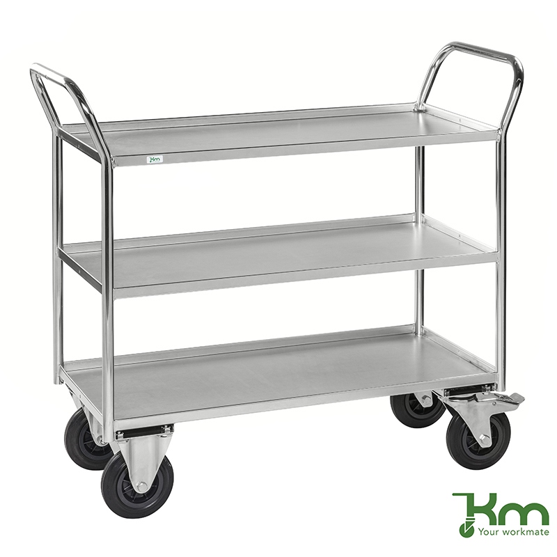 Dimensions des étagères sans gaufrage : 650x450 mm. 2 étagères avec un relief de 10 mm pour protéger la vaisselle contre les chutes. Chariot de service Hendi 810101 en acier inoxydable, 3 étagères solides, roulettes avec frein, facile à assembler, idéal pour un usage professionnel Dimensions (mm):, 905x585x(H)945 ; Plan de travail : 830x510 mm ; 4 roulettes pivotantes (deux à frein) équipés de protections d´angle : ✓ ; Couleur Charge admissible approximative de l'étagère : 70 kg/m². HENDI 810224 Chariot de service avec 3 étagères – soudé Construction soudée durable: Fabriquée en acier inoxydable avec une conception soudée, offrant une résistance et une stabilité exceptionnelles Espace suffisant: Les dimensions des étagères sont de 700x500 mm, avec un espace utilisable de 650x450 mm, suffisant pour les besoins du service Chariot Lourd Roulettes Frein Rayonnage Entrepôt De Stockage / Pour Charges Légères / Pour Charges Chariot Professionnel Charges Lourdes Dimensions totales des étagères : 700x500 mm. Fabriqué en acier inoxydable. Construction soudée garantissant une grande solidité et stabilité.
