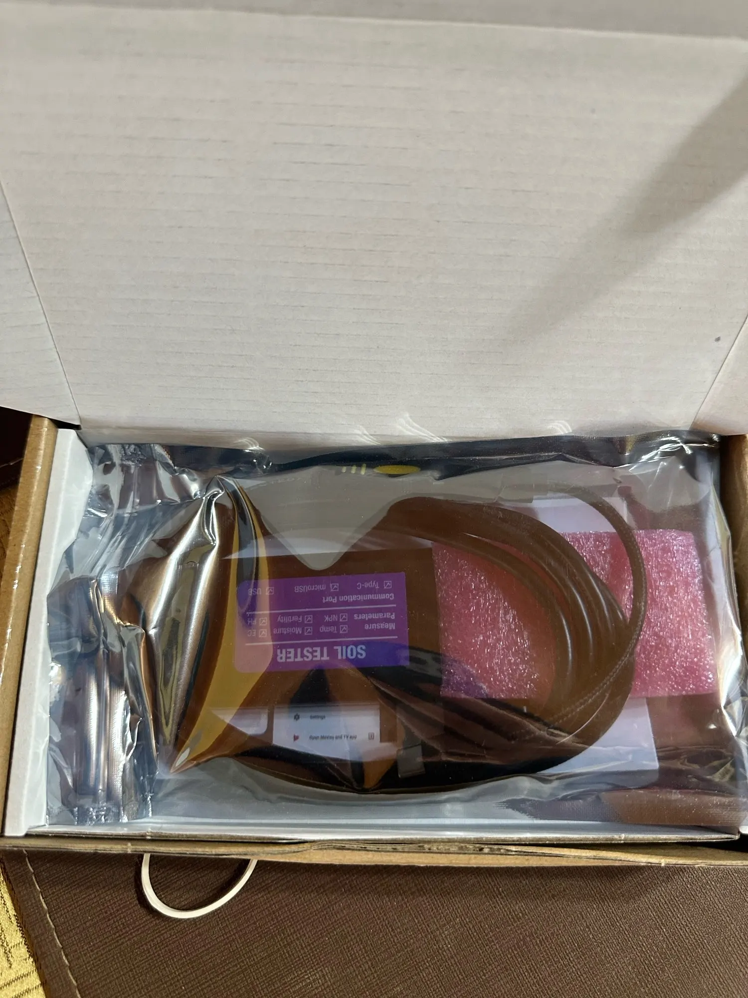 Plateforme d'application : pour système Android uniquement (téléchargement du code QR de l'application). * Accès aux données en temps réel : se connecte facilement aux appareils Android via USB, permettant aux utilisateurs de visualiser, enregistrer et exporter les données du sol instantanément via une application mobile facile à utiliser, améliorant l'expérience de test. * Fonctionnalité de jeu : aucune pile n'est nécessaire pour le fonctionnement ; il suffit de placer le capteur dans le sol et de commencer à tester immédiatement, ce qui le rend idéal pour les travaux sur le terrain et les applications en déplacement. Applications polyvalentes : convient pour l'agriculture, la floriculture, les plantes en pot, l'aménagement paysager et la recherche scientifique. Imperméable et résistant : construit avec une étanchéité IP68 et scellé avec de la résine époxy ignifuge, ce capteur résiste à une exposition prolongée au sol tandis que sa sonde en alliage métallique anti-corrosion offre des mesures fiables dans toutes les conditions de sol. Testeur Sol Numérique ZMdooreasy Testeur De Sol USB 8 En 1 - Analyseur Numérique Pour L Capteur Sol USB Application Matériau d'étanchéité : résine époxy ignifuge. Fonctionnement : pas besoin de piles pour ce testeur de sol pratique – il suffit de connecter le capteur à votre appareil, d'insérer la sonde dans le sol et d'obtenir des mesures immédiates, ce qui le rend parfait pour les jardiniers, les agriculteurs et les amateurs de plantes. Matériau : résine époxy, métal., Dimensions : 125 x 45 mm., Couleur : noir. Contenu de l'emballage : 1 capteur de sol USB 8 en 1., Capacité de test du sol 7 en 1 : ce capteur de sol USB complet fournit une analyse détaillée de l'humidité, de la conductivité, de la température, du pH et des nutriments NPK (azote, phosphore, potassium), vous donnant une parfaite santé de votre sol pour un meilleur soin des plantes et des conditions de croissance optimales. Analyseur de sol 5 sondes permettant de donner : température, humidité, fertilité, pH, conductivité, azote (N), phosphore (P), potassium (K). Découvrez le nouvel analyseur de sol intelligent 8-en-1, un outil révolutionnaire qui permet de lire simultanément 8 données essentielles pour vos plantes Caractéristiques : * Capacité de test 8 en 1 : ce capteur de sol USB offre une analyse complète, mesurant l'humidité, la conductivité, la température, le pH et les nutriments essentiels NPK, ce qui en fait un outil polyvalent pour diverses évaluations du sol. Alimentation : DC 5 V, alimentation USB. Longueur du câble : 1,5 m par défaut. Caractéristiques : Nom de la pièce : capteur de sol USB. EN STOCK : Testeur de sol 8 en 1 IP68 étanche : mesure de la température, de l'humidité, de la conductivité électrique, du pH, du NPK et de la salinité du sol, avec sondes en acier inoxydable pour la culture en , FXY-3111250173511 pas cher. Livraison rapide partout en France Capteur Portable pk de température, humidité du sol, Terminal d'affichage à main Plage de mesure de la température du sol : -40 °C à 80 °C, résolution : 0,1 °C, précision : ± 0,5 °C.