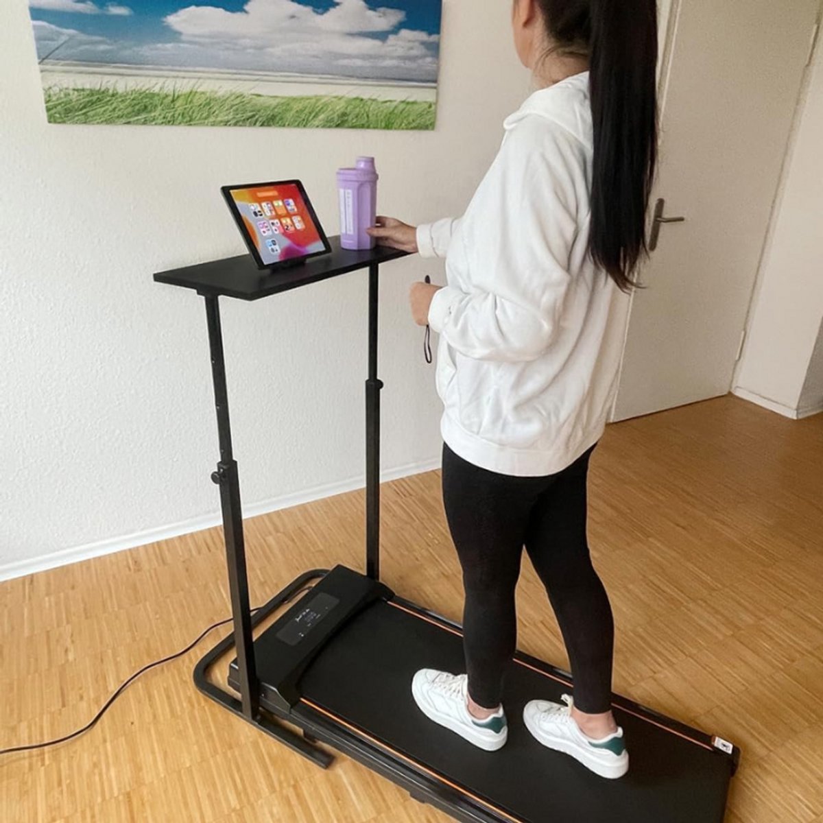 Utilisation : Il est adapté pour les tapis de course, les vélos d'entraînement, les gymnases à domicile, les salles de fitness de bureau, les coins d'entraînement du salon, etc. Utilisation flexible et sûre : les 3 roues universelles, dont 2 avec freins, vous permettent de déplacer le bureau sans effort pour ajuster différents paramètres d'entraînement, et les freins offrent une position stable qui garantit que vos appareils restent en sécurité pendant l'utilisation Poignée latérale : la poignée intégrée permet de soulever et de repositionner facilement le bureau. Contenu de la livraison : 1 bureau de fitness., 3 roues universelles., 1 diagramme en anglais. Utilisation flexible et sûre : les 3 roues universelles, dont 2 avec freins, vous permettent de déplacer le bureau sans effort pour ajuster différents paramètres d'entraînement, et les freins offrent une position stable qui garantit que vos appareils restent en sécurité pendant l'utilisation. Table Ajustable Pour Sport à Domicile Petit Bureau Debout Réglable En Hauteur De 81,3 Cm, Bureau Portable à Roulettes Pour Tapis De Marche, Tapis De Course, Noir Support Ordinateur Réglable Hauteur Porte-gobelet intégré : son design intégré maintient votre boisson en toute sécurité pendant l'utilisation. 【Réglage polyvalent de la hauteur】: la possibilité d'ajuster la hauteur de 34 à 46 pouces vous permet de régler la hauteur en fonction de vos besoins ou préférences pour répondre à différentes postures d'entraînement et de travail. 【Structure robuste】: avec une base vraiment grande (4,6 x 4,5 cm), un support (3,5 x 4,5 cm) et une extension (0,78 x 1,6 pouces), il a une capacité de charge de 110,23 livres et peut facilement contenir votre ordinateur portable, vos livres et vos accessoires de fitness, ce qui offre une plate-forme fiable pour le matériel de travail et les objets personnels pendant que vous faites de l'exercice. Caractéristiques : Matériau : acier Q195, alliage d'aluminium Processus : pliage, moulage sous pression Couleur : noir. Tableau Blanc 90x120CM,Hauteur Réglable Double Face, Tableau Blanc 90x120cm Hauteur Reglable Double Face Tableau Blanc Magnetique Rotatif A 360 Avec 4 Roues Universelles Noir 91259988 Style : moderne Assemblage requis : oui. Roue avec plaque Outil de pivotante à roues universelles de 3 pouces...