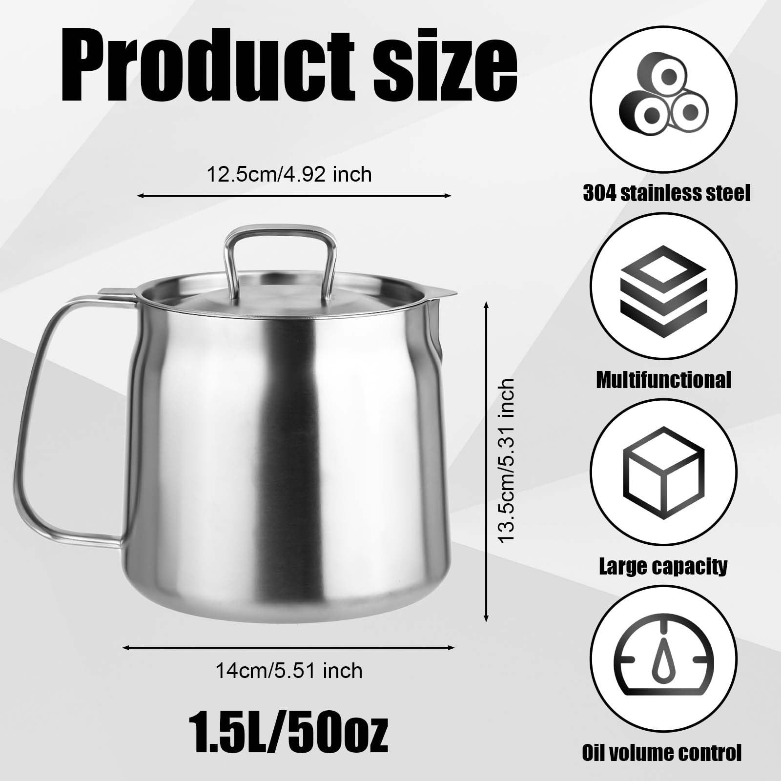 Description des produits : - Couvercle ajusté pour stocker l'huile drainée pour empêcher la poussière de tomber dans l'huile. Polyvalent et pratique : ce pot de filtre à huile en acier inoxydable peut réutiliser l'huile de cuisson utilisée, il tire double fonction comme récipient de stockage, assurant une conservation efficace de l'huile pour une utilisation future Le filtre est amovible et facile à utiliser. Le filtre est amovible et facile à utiliser [UTILISATION MULTIPLE] : ce réservoir de stockage d'huile est idéal pour les cuisines à la maison et au restaurant pour stocker de la graisse de bacon, de la graisse, de l'huile de cuisson, de l'huile de friture, de l'huile chaude, etc Cadeau Cuisine Pratique Pot De Filtre à Huile De Cuisine En Acier Inoxydable, Bouteille Anti-fuite, Filtre De Réservoir De Stockage D'huile De Grande Capacité Récipient Acier Inox Filtre Huile Graisse - Ce pichet à filtre à huile est fabriqué en acier inoxydable durable, qui est antirouille, résistant aux hautes températures et à la corrosion, résistant à l'usure, robuste et durable et a une longue durée de vie - La taille du récipient à graisse en acier inoxydable est de 16 x 10,5 cm, 1,4/1,7 l, ce qui est très bien adapté pour le filtrage de l'huile, le stockage de l'huile et l'utilisation de l'huile et répond aux besoins quotidiens de la maison - Ce réservoir d'huile est idéal pour les cuisines à la maison et au restaurant pour stocker la graisse de bacon, la graisse, l'huile comestible, l'huile de friture, l'huile chaude, etc. [MATÉRIAU EXQUIS ] : ce pichet à filtre à huile est fabriqué en acier inoxydable durable, antirouille, résistant aux hautes températures et à la corrosion, résistant à l'usure, robuste et durable et a une longue durée de vie [Taille parfaite] : la taille du réservoir à graisse en acier inoxydable est de 16 x 10,5 cm, 1,4/1,7 l, ce qui est très bien adapté pour le filtrage de l'huile, le stockage de l'huile et l'utilisation de l'huile, et répond aux besoins quotidiens de la maison Nous emballons soigneusement chaque réservoir d'huile en acier inoxydable pour préserver sa beauté Caractéristiques : - Matériau : acier inoxydable. Récipient de graisse et de stockage d'huile avec crépine à maille fine, pot de bacon, boîte en acier inoxydable pour le stockage de iture [CONCEPTION EXQUISE] : couvercle ajusté pour stocker l'huile drainée pour empêcher la poussière de tomber dans l'huile. Petite maquette de PSD de bouteille d'huile | PSD Premium