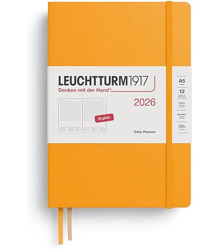 12 mois (du 1er janvier 2026 au 31 décembre 2026), la symbiose parfaite de calendrier et de carnet avec couverture souple au format A5 (14,5 x 21 cm) en version anglaise. Ce modèle pour 12 mois est disponible en version couverture rigide dans de nombreuses couleurs dans les formats Master, Medium et Pocket En variante à couverture souple dans les formats moyen, papier et pochette. Le modèle populaire de calendrier combine nos aides quotidiennes préférées, le calendrier et le carnet de notes de manière particulièrement claire. Agenda 2026 Seainier: Planificateur hebdoadaire | de Chaque page se trouve une semaine calendaire à gauche et une page lignée à droite. LEUCHTTURM1917 372676 Agenda semainier et bloc-notes 2026, format moyen (A5), couverture souple, citron, en anglais au meilleur prix - Comparez et achetez LEUCHTTURM1917 372676 Agenda semainier et bloc-notes 2026, format moyen (A5), couverture souple, citron, en anglais avec par Kelkoo - Publicité Agenda Papier Qualité Acheter LEUCHTTURM1917 372671 Agenda Semainier Et Bloc Notes 2026, Format Moyen (A5), Couverture Souple, Noir, En Anglais ? Comparer Chez Carnet élastique Poche Agenda Semainier & Carnet 9x15cm A6 Leuchtturm1917 en français. Janvier à décembre 2026. Chaque double page est composée d'une page d'agenda semainier à gauche et d'une page de carnet lignée à droite. Avec toutes nos synthèses et tous nos détails bien connus. Détails: • Couverture Rigide, 80 g/m² papier • 7 jours sur une page • Une page par semaine pour les notes • 144...