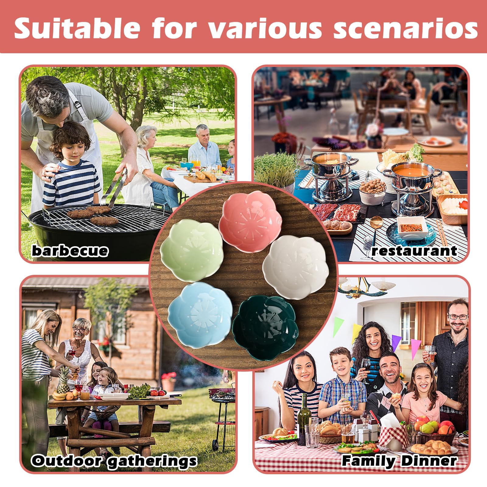 10 Pièces Bols À Sauce, Mini Bols À Dessert, Bols À Trempette Fleurs Coupelles À Sauce En Céramique Bols À Snack Bols Bol Porcelaine Pour Dessert Sauce Soja Épices Collations (5 Couleurs) Spécification: Matériau : porcelaine. Parfait pour être utilisé comme bols petit dejeuner, bol à dessert, bol pour glace, bol riz, bols à collation, petits bol soupe. Ou utilisez-les pour servir des plats d'accompagnement, du miso, des baies, des noix, des tapas, etc Couleur : blanc, vert, bleu clair, vert clair, rose. Bols À Sauce, peut contenir du vinaigre de sauce, de la salade, de la sauce soja, de la moutarde, du piment, de l'huile d'olive, des plats froids, des cornichons, etc. C'est également un cadeau parfait pour les amis, la famille et les collègues Mini Bols à Sauce Céramique Lot 10 6pcs Bols À Sauce En Céramique, Mini Bols À Dessert, Coupelles À Bol Ceramique Contenu du colis: 10 x bols à sauce. Matériau de haute qualité:Le Bols À Sauce est fabriqué en céramique émaillée, robuste, inodore, non toxique et résistante à la chaleur Polyvalent: Ce Bols À Sauce est parfait pour les sauces, vinaigres, plats froids, cornichons, salades, collations, épices et autres collations et apéritifs. fonctionnalité: Le Bols À Sauce est fabriqué en céramique de haute qualité, antitache, anti-rayures, facile à nettoyer, robuste et résistante à la chaleur. Lot de 6 bols à dessert, en porcelaine, 70 ml, petits bols de Toutes les couleurs et glaçures sont sans danger pour les aliments. Idéal pour les hôtels, restaurants, salles de restauration et plus encore. Fabriqué en acier inoxydable de qualité supérieure, robuste et durable pour une utilisation durable. Convient pour la moutarde, les sauces, la sauce soja, le sel, le vinaigre, le sucre, les salades et autres épices