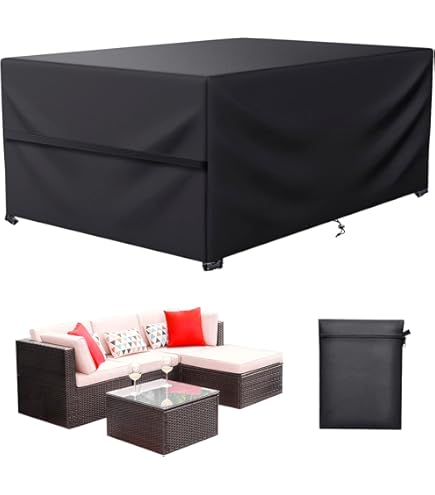 【Large compatibilité】Multi-taille Housse Table de Jardin Non seulement pour les meubles d'intérieur / extérieur et un grand mobilier d'extérieur toute l'année, mais également idéal pour les meubles en rotin ou les meubles de jardin ovales, tels que des chaises, des bancs, une table basse, un ensemble de salle à manger, un ensemble de canapés, un ensemble de meubles en rotin etc Housse Salon de Jardin 225x116x82cm Housse Table de Jardin 420D Oxford Imperméable, Bâche de Protection Extérieur, Housse de Meuble pour Table Canapé Chaises, Housse de Protection pour Mobilier Les housses protègent efficacement les chaises de jardin de l'usure, des rayons UV et des autres éléments extérieurs tels que le soleil, la saleté et la pluie 【Housse pour meubles de jardin 】 Housse salon de Jardin est faite de tissu Oxford 420D, Fabriqué en tissu oxford teint en fil sans décoloration avec revêtement en PVC, imperméable,résistant à la poussière et aux UV, Les bords à double couture sont et aux déchirures et, protection complète de vos meubles de patio extérieur, même lors de tempêtes de neige Avec la housse de meubles de jardin de qualité supérieure de, vous pouvez garder vos meubles de jardin beaux et secs à tout moment Matériel: Haute densité 420D Oxford Couleur: Noir/Argent Matériau: Tissu Oxford IdearbobsCaractéristiques:Imperméable / étanche à la poussière / Résistant aux déchirures / Anti-UV Scène applicable:Extérieur, Intérieur, Balcon, Jardin, Terrasse Paquet Inclus: Housses pour mobilier de jardin x 1 Comment choisir la bonne taille de housse pour salon de jardin ?Veuillez confirmer la taille des housses de meubles de patio et la taille de vos meubles avant d'acheter, pour vous assurer que votre meuble est entièrement couvert et protégé Facile à nettoyer et à ranger- la housse de mobilier de jardin est extrêmement facile à nettoyer, essuyez simplement et rapidement la housse avec un chiffon humide, et séchez au soleil ou dans un endroit bien ventilé Nous vous recommandons de placer quelque chose au milieu de la table de manière à ce que le milieu soit plus haut que les bords afin que lorsqu'il pleut, l'eau de pluie puisse s'écouler facilement et éviter l'accumulation d'eau, peut prolonger la durée de vie de la housse Protéger vos meubles de terrasse n'a jamais été aussi facile Matière Oxford imperméable : Fabriquée en tissu Oxford 420D avec revêtement PU imperméable pour une protection maximale contre la pluie, le soleil, la poussière et la neige. Coutures renforcées par bande adhésive étanche et double piqûre orange pour une durabilité accrueSangles réglables améliorées : Équipée de sangles à boucles renforcées avec triangles de renfort... Après des tests répétés, cette housse en matériau imperméable à haute efficacité peut empêcher vos meubles de ne pas pénétrer par la pluie, prolonger la durée de vie de vos meubles Housse de protection pour meubles de jardin toutes saisons Housse table de jardin protégez votre table et vos chaises de terrasse de la pluie, de la saleté, de la poussière, des déjections d'oiseaux et de la neige par tous les temps. Housse Table Chaises Terrasse Housse De Protection Pour Mobilier De Jardin 420D En Tissu Avec Cordon Serrage Boucles