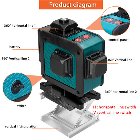 Le système de compensation amortissant magnétique assure un temps de nivellement rapide. Outil de niveau Laser multifonctionnel 3D 12 lignes, lignes horizontales verticales avec 16 lignes pour plus fin, avec système d'auto-nivellement, flexibilité et stabilité. Équipé d'une fonction d'étalonnage automatique et d'un nivellement automatique ≤ 3 Cependant, lorsque l'angle est supérieur à 3°, la lumière continue à clignoter et un bip retentit pour vous rappeler de le réinitialiser sur un sol plat. Équipé d'une fonction d'étalonnage automatique et d'un nivellement automatique ≤ 3°. Lieu d'utilisation, Intérieur / extérieur ; Couleur du faisceau, Vert ; Faisceau autostabilisant, Oui ; Autonivelant, Oui ; Portée maximum (en m), 12 Fonction d'alarme en dehors des zones de sécurité. Mini taille, design innovant et exquis en forme de locomotive, léger et portable. Multifonctionnel 16 Lignes Niveau 3° Auto-Nivellement Machine Rechargeable Lithium Batterie Outil de Nivellement Autocollant Mur de Sol Omnidirectionnel Imperméable à l'Eau Outils de Rénovation de la Maison avec 1.2M de Hauteur Multicolore