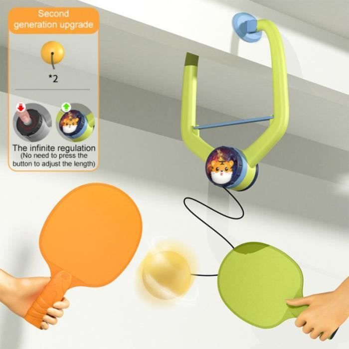 Apprentissage ludique pour les enfants : l'entraîneur éveille l'intérêt des enfants pour le tennis de table grâce à des exercices simples et interactifs. Cet ensemble offre une introduction agréable et accessible au tennis de table, encourageant le jeu actif et le développement des capacités motrices des tout-petits, ce qui en fait un investissement rentable pour favoriser l'amour du sports dès le plus jeune âge mizikuu Entraîneur de ping-pong suspendu - Jeu de pingpong de Porte parfait pour les cadres de porte. Parfait pour les exercices individuels ou comme jeu de groupe divertissant pour augmenter durablement les compétences en tennis de table. Pour tous les âges : que vous soyez enfant ou adulte, l'entraînement améliore la coordination œil-main et les réflexes. Peu encombrant et utilisable de manière flexible : grâce à son design portable, l'entraîneur peut être monté partout et ne prend presque pas de place. Que ce soit dans la chambre d'enfant, le bureau ou le jardin, entraînez-vous à tout moment et améliorez votre capacité de réaction de manière ludique. Tout nouveau en 2024, 1 set d'aides d'entraînement de tennis, raquette... Le compagnon idéal pour les fans de ping-pong ! corridor moderne lampe de table suspendu del 176867 158491 | Luminaires | Multi Luminaire Raquette Ping-pong Quixotical Jeu De Ping-Pong De Porte U2013 Entraîneur De Tennis De Table Réglable Pour Cadre De Porte, Tennis De Table Suspendu Portable D'Intérieur, Avec Raquettes En Bois Et Balles Pour Idéal pour développer les capacités motrices et encourager l'enthousiasme pour ce sport dès le plus jeune âge - seul ou en duel avec des amis. - Peu encombrant & flexible - Montage en quelques secondes, pas besoin d'espace supplémentaire, il suffit de le fixer à la porte et vous pouvez vous entraîner avec la balle et la raquette fournies. Parfait pour les passionnés de tennis de table qui veulent s'entraîner à tout moment et partout. Spécification : Matériau : ABS Sport : tennis de table Taille de l'emballage : 26 x 20 x 6,5 cm Âge applicable : enfants et adultes Le paquet comprend : Support réglable x 1 Raquette de ping-pong x 2 Ping-pong x 6 Il suffit de le fixer à une porte pour que l'entraînement commence.