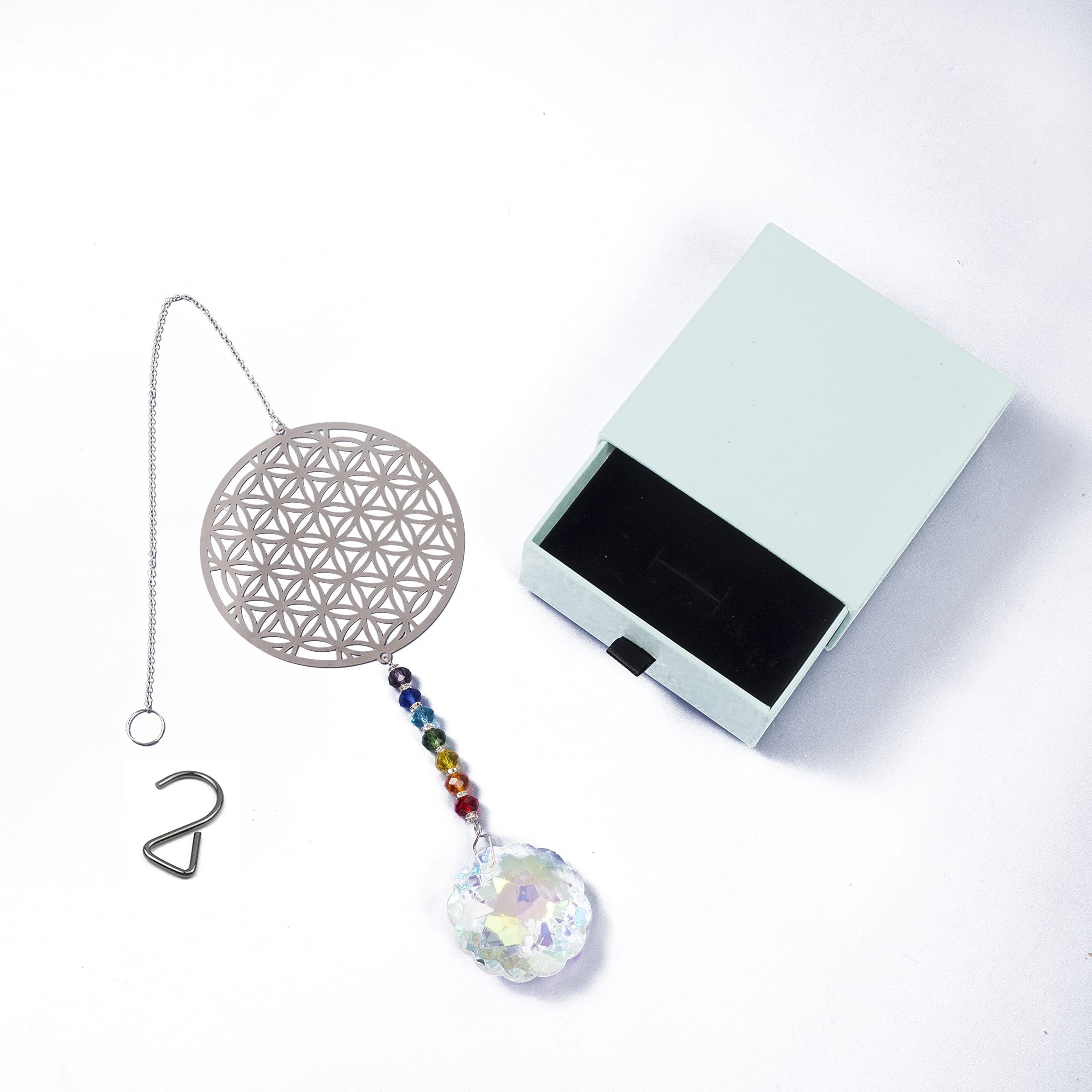 Carillon à vent,Attrape-soleil en forme d'aile d'ange en cristal Pendentif Métal Fleur De Vie Attrape-soleil Suspendu En Cristal, 75mm, Prisme à Facettes, Lustre En Verre, Cristaux, Fleur, Vie, Lightcatcher, Arc-en-ciel, Pendentif De Jardin Décoration Lumineuse Mariage Cadeau Idée cadeau parfaite - Cadeau parfait pour vous-même ou un être cher. Avertissement De Sûreté Tenir à l'écart du feu ouvert et des sources directes. Caractéristiques : ce Suncathcer mesure environ 40 x 8,5 cm Attrape-soleil en cristal - Pendentif en métal - Fleur de vie - Verre - Chakra - Prisme sphérique - Lustre en forme de goutte - Attrape-soleil pour lustre, pendentif, décoration de mariage, fenêtre, 2 888€ Livraison GRATUITE mer. 3 sept. pour votre première commande Matériau K9 : le prisme boule de cristal utilise un matériau avancé K9, le matériau K9 a un indice de réfraction plus élevé et une transparence plus forte, sans plomb, de jolies boules de cristal au design aussi brillant qu'un prisme de couleur comme le cristal plat, super étincelant et plus clair. Parcourez notre sélection de attrape soleil en cristal véritable : vous y trouverez les meilleures pièces uniques ou personnalisées de nos boutiques Facile à accrocher : chaque cristal Suncatcher a un petit trou sur le dessus, vous pouvez utiliser une corde ou un anneau en métal pour passer à travers le trou, puis l'accrocher à la fenêtre ou à tout autre endroit que vous aimez. Combinaison parfaite : l'attrape-soleil se combine avec l'art du métal et fait briller votre pièce sous la lumière du soleil.