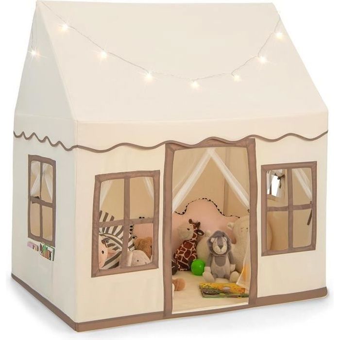 【Grand Espace de Jeu】Mesurant 146 x 96 x 133 cm (L x l x H), cette grande maison de jeu pour enfants offre suffisamment d'espace pour 3 à 4 enfants. 【Conception à Double Rideau】Cette tente de jeu pour enfants est livrée avec 2 rideaux différents, ce qui équilibre les avantages de la dissimulation et de la respirabilité. Achetez Tente de Jeu pour Enfants avec Rideaux en Tissu et Moustiquaire Lumières Etoilées Fanions à Carreaux pour Les 3 Ans et Plus Gris sur , bénéficiez des promotions diverses avec une livraison gratuite sur tous les produits 2 fenêtres supérieures en maille, 2 fenêtres latérales avec rideau maintiennent la tente respirant. Les petits adorent jouer dans des cabanes ! Et si vous... Parallèlement, elle peut accueillir un lit d'enfant jusqu'à 135 cm de largeur. COSTWAY Maison de jeux pour enfants Indoor, Tente pour 【Maison de Jeu Agréable】Cette tente de jeu pour tout-petits est conçue avec des lumières d'étoiles captivantes (nécessite 2 piles AA (non incluses)) et des bannières de fanions colorées, créant un plaisir sans fin pour les enfants. 【Jouet Parfait】Cette maison de jeu d'intérieur pour enfants est livrée avec des cordes de rideau pratiques pour que les enfants puissent attacher les rideaux de porte selon leurs besoins. Tente Enfant 3 Ans+ Tapis Lavable Tente De Jeux Pour 4 Enfants COSTWAY-Guirlandes Lumière Étoile-Tapis En Tente De Jeu Avec Rideaux Et Moustiquaire Les enfants peuvent fermer le rideau moustiquaire et ouvrir le rideau en tissu pour voir à l'extérieur. Avec un grand espace de jeu pouvant accueillir 3 à 4 enfants et un lit pour enfants jusqu'à 135 cm de large, elle crée une pièce confortable et privée pour un plaisir sans fin. Cette maison de jeu peut être un choix idéal pour les enfants de 3 ans et plus.