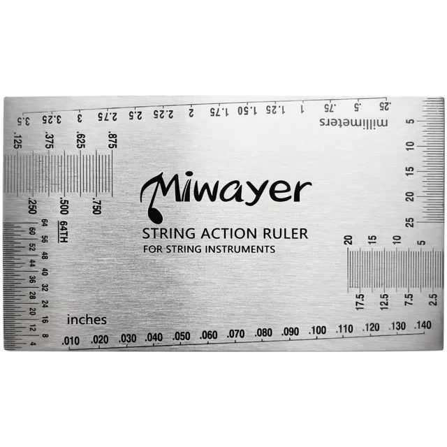Caractéristiques: La jauge fournit une mesure précise de la hauteur de la corde, de la hauteur de la selle du pont, de la profondeur de la fente pour selle, de la hauteur de la tête de lecture, de la profondeur de la rainure de frette et de la hauteur de l’écrou. Cette jauge d'action des cordes offre une mesure de précision via son design à double échelle, que les musiciens atteignent un réglage optimal de la jouabilité tout en maintenant une exactitude constante dans l'ajustement de la hauteur des cordes Les protecteurs de frette en acier inoxydable de 2 tailles sont spécialement conçus pour protéger la touche lorsque vous travaillez sur vos frettes. Très pratique et utile, outils de mesure préférés des luthiers, guitaristes et bricoleurs. Avec tableau de conversion de l'action des cordes à la 12ème frette imprimée. Jauge Action Cordes Guitare Jauge Pour Guitare Règle Jauge Action Guitare - Outil Mesure Cordes, Double Face Pour Guitare Basse, Format Carte Jauge D'action Guitare Mesure Hauteur Cordes Très pratiques et utiles, les outils de mesure préférés des luthiers, guitaristes et bricoleurs. MULTI USE: Format de poche avec multi usage des deux côtés. Impérial (pouces) d'un côté, métrique (millimètres) de l'autre. Spécification: Condition: tout neuf Matériau: acier inoxydable Couleur: argent Taille de la jauge (L * W * Épaisseur): Env., 89 * 51 * 6mm/3., 5 * 2., 0 * 0., 2in Protecteurs de frettes (L * W): Env. Nouvelle règle de jauge d'action de corde, jauge de configuration de 78 * 22 * 1 mm/3,07 * 0,87 * 0,04 pouces (grand);78 * 13 * 1 mm/3,07 * 0,51 * 0,04 pouces (petit) Poids: env. Compact, portable et facile à transporter. Diverses graduations sur les côtés permettent de mesurer différents espacements et offrent des fonctionnalités complètes. Fabriqué en plastique synthétique, très résistant. Convient aux guitares classiques, électriques, acoustiques, basses et autres instruments à cordes. 2