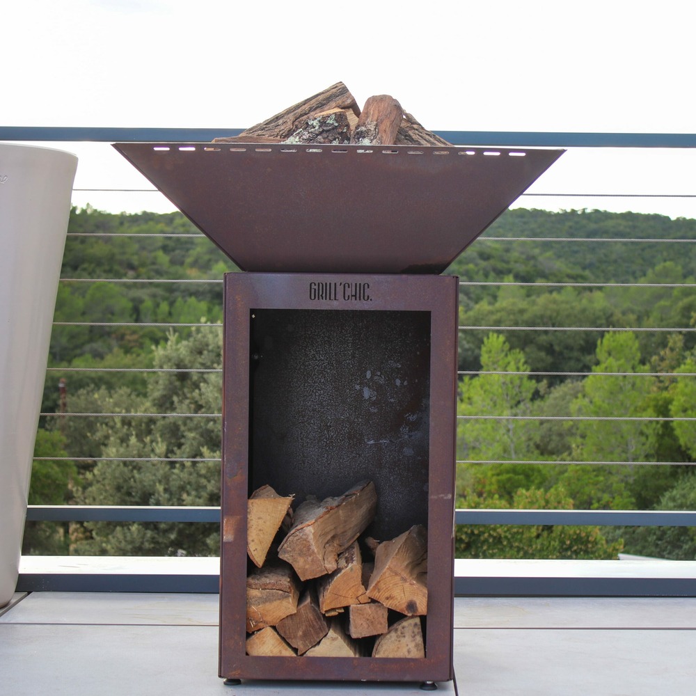 Cuisson Extérieure Conviviale GRILL CHIC Auvergnat Simple Cuve Corten - Rond - Brasero - Rue Du Commerce Cuisson Extérieur Durable Patio IDÉAL POUR LES REPAS CONVIVIAUX - Parfait pour les repas en famille ou entre amis, avec une large surface de cuisson pour plusieurs personnes. Son design en Corten SC assure une robustesse et une longévité exceptionnelles. La plaque de cuisson épaisse garantit une répartition uniforme de la chaleur... Achetez AUVERGNAT Brasero Simple Cuve Corten Carré - Avec rangement bois - Design pratique et élégant pour vos soirées en extérieur : Foyers et braséros Grâce à son format plus compact et à ses pieds réglables, il s’adapte facilement aux petites terrasses, patios ou jardins urbains. RÉSISTANT AUX INTEMPÉRIES - Structure durable et résistante aux conditions extérieures, offrant une utilisation prolongée tout au long de l'année. Brasero en acier jusqu'à 800 °C avec motif rond, brasero d'extérieur CARACTÉRISTIQUES TECHNIQUES :- Formes : Rond (Ø 83 cm) ou Carré (dimensions variables selon modèle)- Matériau : Acier Corten 2 mm- Plaque de cuisson : Acier embouti 10 mm- Version : Simple Cuve- Options : Avec ou sans rangement bois intégré- Pieds : 4 réglables- Teinte : Finition Corten naturelle- Capacité : 6 à 8 personnes- Fabrication : Française- Garantie : 2 ans- Montage : Prêt à l’emploi- Usage : Cuisson extérieure conviviale, même sur petits espaces- Résistance : Conçu pour résister aux intempéries toute l’année. DESCRIPTION DU PRODUITLe brasero plancha AUVERGNAT Simple Cuve Corten de Grill’Chic est un modèle compact et performant, pensé pour les espaces plus restreints tout en offrant une qualité de cuisson professionnelle. Proposé en forme carrée ou ronde (selon les modèles), avec ou sans rangement bois, ce brasero s’intègre facilement dans tout type d’extérieur. AVANTAGES DU PRODUITL’AUVERGNAT séduit par sa praticité et son efficacité. Fabriqué en France et garanti 2 ans. Un produit esthétique et durable, idéal pour des repas en plein air conviviaux. Disponible avec ou sans rangement bois intégré pour plus de modularité. Conçu en acier Corten 2 mm, il garantit robustesse, longévité et un rendu esthétique unique grâce à sa patine naturelle évolutive.