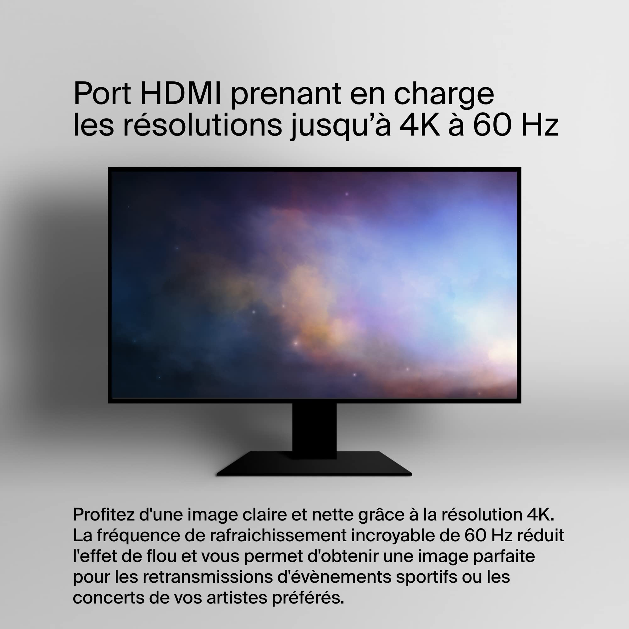 PRISE EN CHARGE HDMI 4K : ce hub vous offre une qualité d'image exceptionnelle grâce à son port HDMI 2., 0, compatible avec des résolutions d'image allant jusqu'à 4K à 60 Hz. Belkin Connect Hub USB-C vers 4 ports USB-C PD 100 W La solution parfaite de hub USB-C tout-en-un pour connecter un ordinateur portable USB-C à plusieurs appareils à l'aide d'un seul câble USB-C. Avec un design compact, une résolution 4K HDMI 1.4 et une puissance Power Delivery pouvant atteindre 100 W, la réussite n'aura plus de secret pour vous La performance dépend des spécifications de l’ordinateur portable. Ce hub offre une recharge rapide et efficace pouvant atteindre jusqu'à 100 W. ** Les termes HDMI, HDMI High-Definition Multimedia Interface, HDMI Trade Dress et les logos HDMI sont des marques commerciales ou des marques déposées de HDMI Licensing Administrator, Inc. * Port USB-C prenant en charge les transferts de données et la technologie Pass-Through jusqu'à 100 W (dont 15 W pour le fonctionnement du hub lui-même). Le produit est conçu avec des matériaux résistants à la combustion. Le port HDMI prend en charge les affichages 4K à 60 Hz. Lecteur Carte Sd Microsd 5gbps Belkin Hub USB-C, Station D'accueil Multiport 5 En 1 – Station D'accueil USB -C Pour MacBook Et Windows Avec HDMI 1.4 4K, 2 Ports USB-A 3.1, SD 3.0, Micro SD 3.0, Et Transfert De Données 5 Gbit/s Pour Hubs Usb USB-C est une marque déposée de l'USB Implementers Forum. Construisez la station de travail ultime avec 7 ports pour 2 ports USB-A, USB-C 100 W, HDMI 4K, SD 3.0, microSD 3.0 et Ethernet 2,5 Go. Avec ce gadget polyvalent, vous pouvez maintenant créer à votre guise, grâce à la connexion à un moniteur 4K 60 Hz pour une résolution cristalline pendant que vous regardez, modifiez ou surfez sur le Web HUB USB-C MULTIPORT : grâce aux 5 ports de ce hub, vous pouvez connecter un écran externe via HDMI et jusqu'à 4 appareils supplémentaires pour une qualité vidéo exemplaire, un transfert rapide des données et une recharge efficace. Les lecteurs de cartes SD et microSD vous permettent de simplifier vos transferts de fichiers. Grâce à la fonction PD 100 W, ce hub est la solution idéale pour travailler à la maison, au bureau ou en déplacement. *** Le revêtement de ce produit (gaine exclue) contient au minimum 75 % de plastique recyclé post-consommation. Le port USB-C vous permet aussi de recharger votre appareil hôte. Il recharge un MacBook Pro M4, un iPhone 17 Pro, etc. POWER DELIVERY DE 100 W : gardez votre ordinateur portable rechargé tout en connectant tous vos périphériques. Profitez d'un débit de 5 Gbit/s.