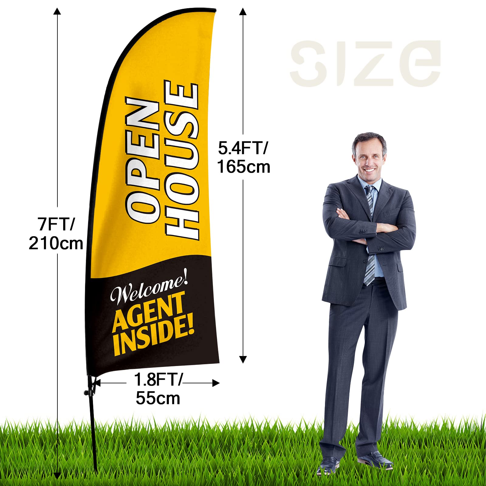 QSUM Drapeau Swooper De 2,1 M Avec Kit De Mât, Piquet De Sol, Panneaux De Maison Ouverte Pour Entreprises Et Vitrines (orange Et Noir