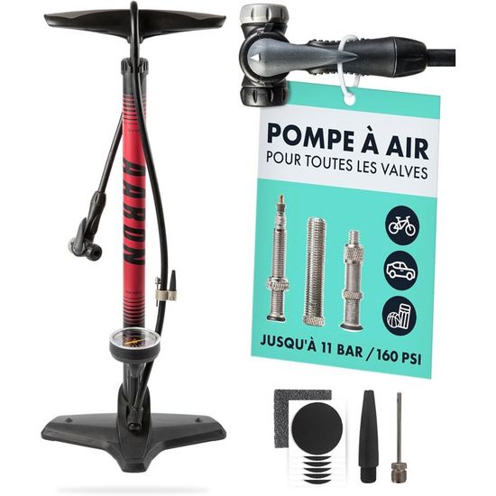 Gonfleur Vélo Acier AARON - Pompe à Pied Pour Vélo Sport One - Avec Manomètre/pour Tous Pompe à Vélo Comprend des barils et une poignée en acier, les poignées ergonomiques offrent une utilisation confortable qui la rend facile à saisir, ce qui peut facilement tirer les pompes Ces pompes à pied sont généralement livrées avec des adaptateurs pour valves Presta et Schrader, ce qui les rend compatibles avec une large gamme de pneus et d’objets gonflables, puisque leur utilisation n’est pas 100 % exclusive au vélo Oxford Airtrack Workshop Pompe de vélo à pied 11 bars manomètre intégré Contenu du paquet : 1 pompe à pied pour vélo. Les pompes à pied pour vélo sont une excellente solution pour un gonflage rapide, adaptées pour les valves à double tête, ce qui en fait un outil essentiel pour vos besoins de cyclisme Pompe Velo Bike Pump Cycle Pompes pour Vélo Et Vélo Vélo De Route Pompe La couleur de l'article peut varier de celle de la photo, en fonction des paramètres d'affichage et de luminosité de votre ordinateur., Merci Idéal pour les amateurs de cyclisme, les aventuriers en plein air, la famille et les propriétaires de véhicules qui ont besoin de capacités de gonflage d'urgence, assurant que vous êtes toujours prêt à faire du vélo. Couleur : conforme à l'image. Dimensions : environ 128 x 360 mm. Poids du colis : environ 384 g. Merci de ne commander que si vous acceptez cette marge d'erreur. Remarque : Les mesures étant prises à la main, les tailles indiquées peuvent varier de 1 à 3 mm. Caractéristiques : Matériaux : acier et plastique.
