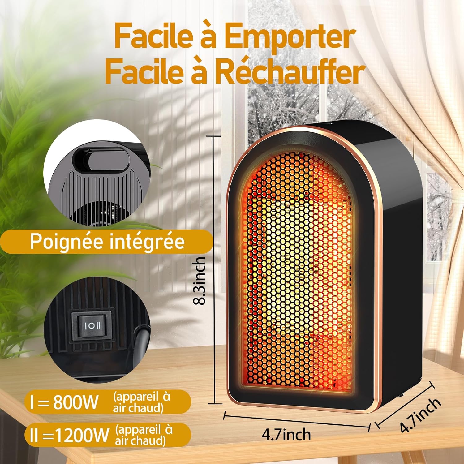 EN STOCK : Chauffage Soufflant électrique En Céramique 1200W Avec 2 Réglages De Chaleur Et Protection Contre La Surchauffe Chauffage Rapide Et Silencieux à Faible Consommation D'énergie (blanc), Mano 2025 12 A03263 pas cher. Livraison rapide partout en France Le radiateur soufflantet économe en énergie est petit et facile à transporter Chauffage Bureau Salle Bain Radiateur Soufflant,1200W Chauffage Soufflant Céramique,Mini Chauffage Silencieux 1200W Chauffage rapide : ce radiateur soufflant silencieux à économie d'énergie utilise un élément chauffant en céramique PTC de haute qualité pour un temps de préchauffage rapide. Le radiateur soufflant à économie d'énergie silencieux peut être placé sur les bureaux, les bureaux et les tables de chevet. Il peut être utilisé par les personnes âgées et les enfants Radiateur Soufflant - ZGEER - 1200W - 2 Réglages de Chaleur... 1200W radiateur soufflant ménage bureau silencieux PTC chaleur rapide Design élégant : la forme élégante et compacte du radiateur soufflant minimise les besoins en espace et la poignée de transport portable vous permet de le transporter facilement dans n'importe quelle pièce. Large application : il combine des fonctionnalités conviviales, élégantes, portables et respectueuses de l'environnement. Contrôle intelligent de la température : le radiateur soufflant silencieux à économie d'énergie dispose d'un double système de contrôle de la température et de protection contre la surchauffe pour votre sécurité.