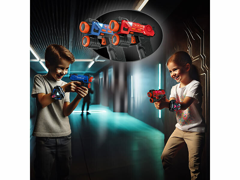 Megableu Laser Shoot Sharper Image 1214006271 - Laser Tag Battle Pack - Pistolets Laser Pour 2 Joueurs Avec 2 Micro-capteurs De Du00e9gu00e2ts - Pour Les Enfants U00e0 Partir De 8 Ans Laser Game Battle MODE MULTIJOUEUR 2 JOUEURS - Défiez vos amis un par un dans des batailles intenses grâce au mode multijoueur. VATOS Juego de pistolas láser, ini etiqueta láser infrarroja para... 2 pistolets laser avec projecteur | Nerf et jeux de tir Ce jouet produit des flashs pouvant déclencher l'épilepsie chez les personnes sensibles., ATTENTION ! EFFETS SONORES ET LUMINEUX IMMERSIFS - Plongez dans l’action avec des effets sonores et lumineux immersifs qui rendent chaque partie encore plus palpitante. Laser Tag Game Set avec Projecteur – 2 Mini Laser Tag Guns pour Enfants (3+) - Jeux ARMURE AVEC COMPTEUR DE VIES INTÉGRÉ - Suivez facilement le nombre de vies restantes grâce à l’armure interactive. Description du produit Découvrez le set de jeu de laser tag Lexibook, conçu pour offrir une expérience de jeu immersive et réaliste. Ce set de laser tag est idéal pour les enfants, offrant une activité ludique et dynamique qui les éloignera des écrans tout en stimulant leur esprit stratégique et leur coordination. Avertissement De Sûreté ATTENTION ! Que vous soyez à la recherche d’un cadeau parfait ou d’une nouvelle activité pour animer vos soirées, ce set de laser tag est le choix idéal ! Tirez jusqu'à 25 mètres de distance et affrontez-vous lors de duels dans le noir épiques. Risque de suffocation en raison des petites pièces. Chaque joueur dispose de 3 vies par partie, ce qui ajoute une couche de stratégie et de suspense à chaque affrontement.