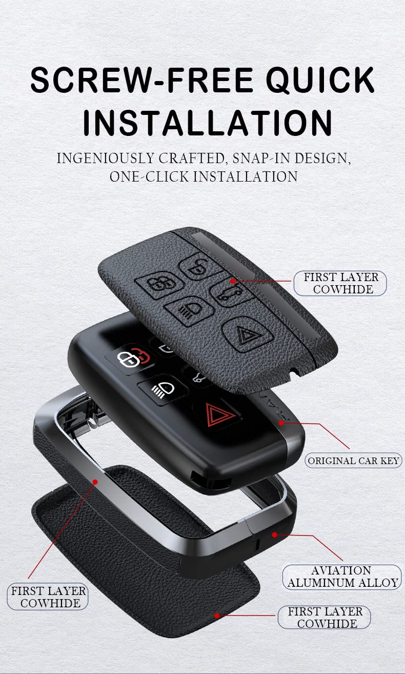Le noir - Porte-clé En Cuir Véritable Pour Homme, Accessoire De Mode Coque Clé Defender Discovery Sport Ontto Coque De Clé En Cuir Pour Land Rover Compatible Avec Coque Clé Jaguar Compatible ▲▲▲ Sans vis ▲▲ : il n'y a pas besoin d'utiliser des vis pour l'installer, design à clipser, installation et démontage faciles Il peut protéger efficacement votre clé de voiture contre les chutes, les chocs, les rayures et la poussière. Veuillez vous référer au porte-clés assorti présenté sur l'image. Cette coque de clé offre une protection complète d'avant en arrière, à gauche et à droite. Il peut protéger efficacement votre clé de voiture contre les chutes, les chocs, les rayures et la poussière. Haute qualité ▲ Modèles compatibles ▲ : Type A compatible avec Land Rover Discovery (2012-2019), Discovery4 (LR4) (2012-2016), Discovery Sport (2015-2019), Freelander 2 (2013-2015), Rang Rover (2013-2017), pour Rang Rover Evo. Haute qualité : cette coque de clé est fabriquée en matériau véritable qui est assez durable. Conçue selon le porte-clés d'origine, de sorte que cette coque de clé est parfaitement adaptée et n'affecte pas la sensibilité du bouton lors de l'utilisation, ni n'affectera le signal de la clé ▲▲Matériau ▲▲▲ : étui de clé fabriqué en métal de qualité supérieure (alliage d'aluminium) + cuir, matériau double couche, s'adapte fermement et léger Important : veuillez prêter attention aux types A et B avant d'acheter.