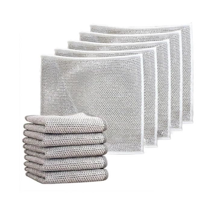 10 pièces Tampons de nettoyage en laine d'acier à double éponge Magique Lot De 10 Torchons De Cuisine Double Face Réutilisables Pour 10 Pièces Lot économique Ils nettoient efficacement les casseroles et poêles en céramique, les casseroles et poêles antiadhésives, les lavabos, les baignoires, les fonds de four, les cuisinières, les pneus ainsi que les pommes de terre, les œufs, les fruits et bien plus encore. La taille de chaque torchon est de 20*20cm. Il suffit de le plonger dans l'eau pour dévoiler ses effets magiques et éliminer facilement les taches. Gants de nettoyage réutilisables en Nitrile rose, ... – Grandado Entretien facile : Nos torchons à vaisselle en fil double couche se nettoient facilement après utilisation – il suffit de les rincer à l'eau pour éliminer les taches et les résidus. Design double couche : le chiffon à vaisselle multifonction dispose d'une structure double couche fabriquée avec des matériaux de qualité supérieure et des coutures de précision. Ce design élimine non seulement efficacement les résidus alimentaires et la saleté, mais améliore également la durabilité DOMAINES D'UTILISATION ÉTENDUS : Ces torchons à vaisselle en fil métallique polyvalents conviennent à diverses tâches de nettoyage ménager – par exemple dans la cuisine, le garage, la douche et d'autres environnements. Les torchons à vaisselle en fil d'acier peuvent être utilisés à l'état humide ou sec.