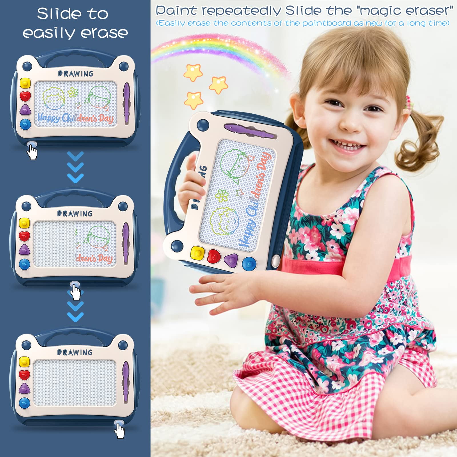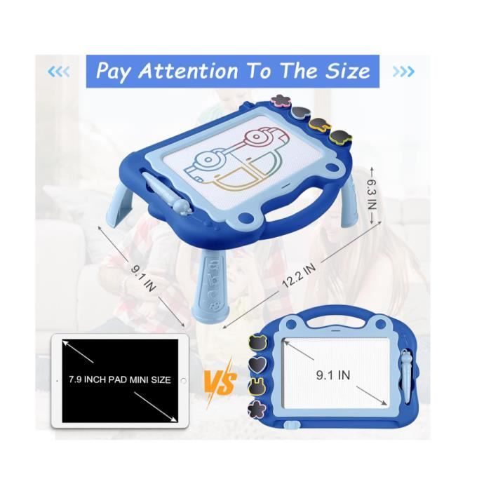 Les tout-petits peuvent explorer lettres, chiffres et formes tout en apprenant doucement à tenir un stylet et à faire leurs premiers pas en écriture, développant ainsi la coordination main-œil, la motricité fine et les compétences en dessin. Les pieds de support détachables transforment facilement le tableau en mini table, chevalet incliné ou ardoise de dessin portable. Sa structure renforcée résiste aux chutes légères et à l’usage quotidien. Portable et parfait pour les voyages : Léger et équipé d’une poignée pratique, ce tableau à dessin magnétique est idéal pour les trajets en voiture, train ou avion. Conception sûre, durable et adaptée aux enfants : Fabriqué en plastique ABS de haute qualité, non toxique et conforme aux normes de sécurité des jouets (US et UE), ce tableau de dessin magnétique éducatif garantit une utilisation sans danger. Tableau magnétique d'apprentissage | Bébé Joli Ce tableau de dessin dinosaure réutilisable permet aux enfants de dessiner encore et encore, à la maison ou en déplacement, sans craindre les taches ni les éclaboussures. La gomme coulissante lisse efface l’écran rapidement pour un nouveau départ immédiat. Tableau de Dessin Magnétique - Ardoise Magique - Grande avec Pieds... AiTuiTui Ardoise Magique Tableau Jouets Enfants 3+ Ans, Planche à Dessin Magnétique pour Enfant Tablette de Croquis Effaçable Jouets Créatifs pour Les Cadeaux d'anniversaire pour Garçons Filles | Votre wishlist sur Un choix idéal pour offrir aux enfants dès 1 an un espace de jeu créatif, sûr et éducatif. Les pieds à visser en spirale assurent une stabilité parfaite tout en permettant aux enfants d’ajuster la position eux-mêmes. AiTuiTui Ardoise Magique Dinosaure Pieds Amovibles pour Enfants, Tableau Magnétique Éducative Bébé 1 2 3 Ans, Jouet Créatif d'Écriture Filles Garçons, Jouet de Voyage Cadeau Anniversaire Noël, Bleu Cette conception solide et adaptable aide les enfants à se concentrer sur la création artistique, le dessin bébé et les activités créatives à leur propre rythme, en toute autonomie. Les couleurs vives captent l’attention, stimulent l’imagination et transforment chaque moment de jeu en apprentissage amusant et éducatif. Options de dessin flexibles pour stimuler la créativité : Notre tableau de dessin magnétique dinosaure est soigneusement conçu pour offrir un jeu flexible et éducatif, permettant aux tout-petits de dessiner de différentes manières. Adapté aux garçons et filles de 1 2 3 4 ans, il constitue un cadeau parfait pour anniversaires, Noël, Pâques ou la Fête des enfants.