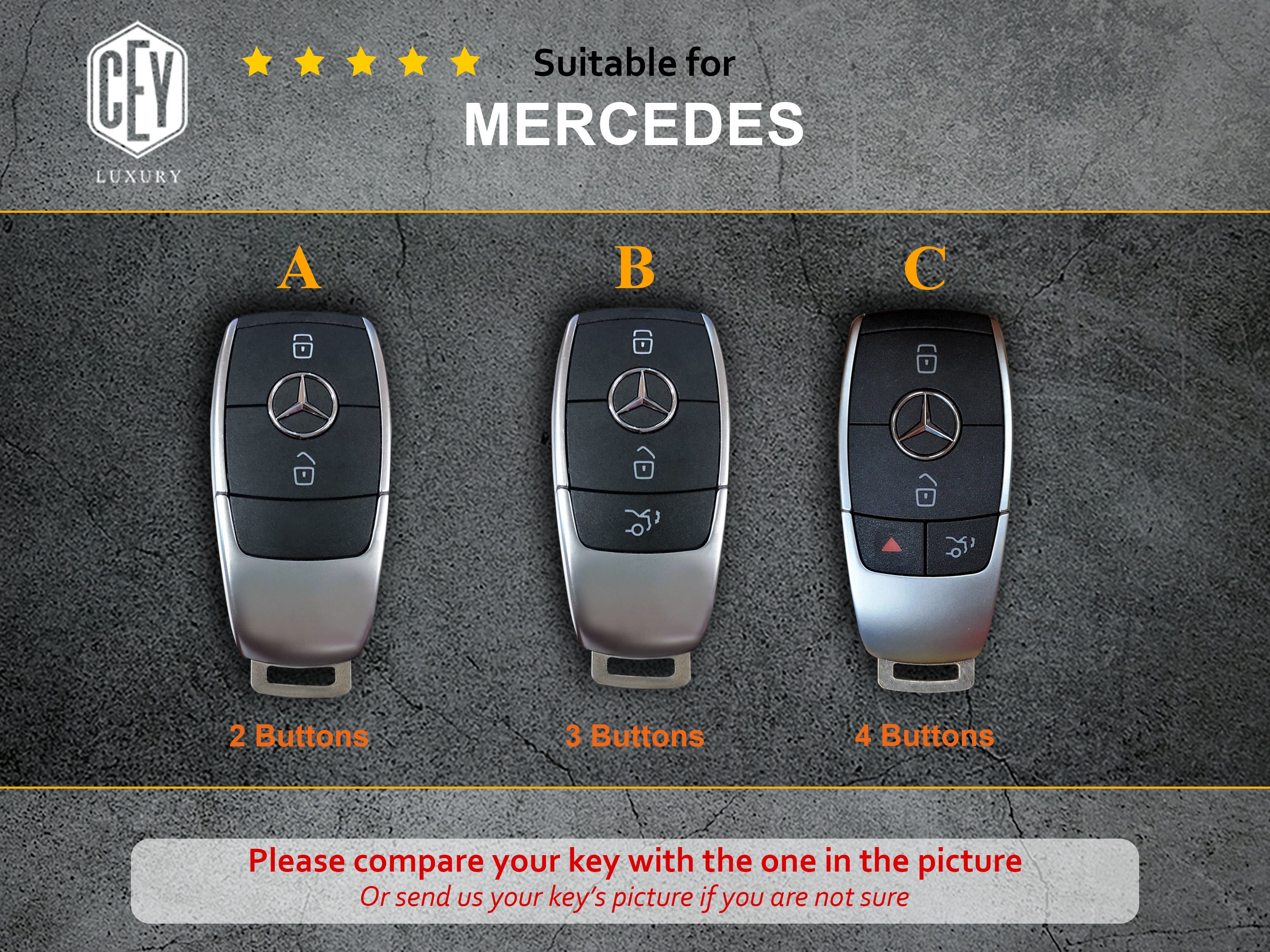 TECART Étui de clé de voiture en cuir de vachette et alliage d'aluminium - Convient pour Mercedes Benz A C E S G Classe GLC CLE CLA W177 W205 W213 W222 S63 AMG Portable Coque de clé de voiture Modèle d'utilisation : Convient à Mercedes Benz A B C E ML S V W R CL CLK W176 W245 A203 W204 W211 W245 Housse Clé Télécommande Blanche OFF WE GO Etui Cles Coque Clé Étui Clés Pour Mercedes Benz A B C E GLA Coque Clé Mercedes À l'épreuve des chutes Protection à 360° de vos clés 【Modèles Applicables】Le coque de clé pour voiture est compatible avec Mercedes Benz A B C E ML S V W R CL CLK W176 W245 A203 W204 W211 W245., (Note : En raison des différentes années de modèle, les versions de clé sont différentes, veuillez choisir le bon couvre-clé en fonction de l'image) 【Matériau Souple】Notre coque de clé est faite de matériau TPU doux et durable, matériau doux, facile à installer et à enlever, surface lisse, anti-rayures, anti-chute, imperméable à l'eau, anti-poussière, 360°protéger vos clés, de sorte que vos clés de voiture ont été conservées dans un état neuf. Étui porte-clés, étui porte-clés de voiture 2 boutons remplacement de... Coque de clés pour Mercedes Sprinter 1 Anti-Chute 2 Signal 3 Conforts 4 Couleur Note : En raison des différentes années de modèle, les versions de clé sont différentes, veuillez choisir le bon couvre-clé en fonction de l'image Disponible dans une large gamme de couleurs Convient à différentes personnes, idéal comme cadeau
