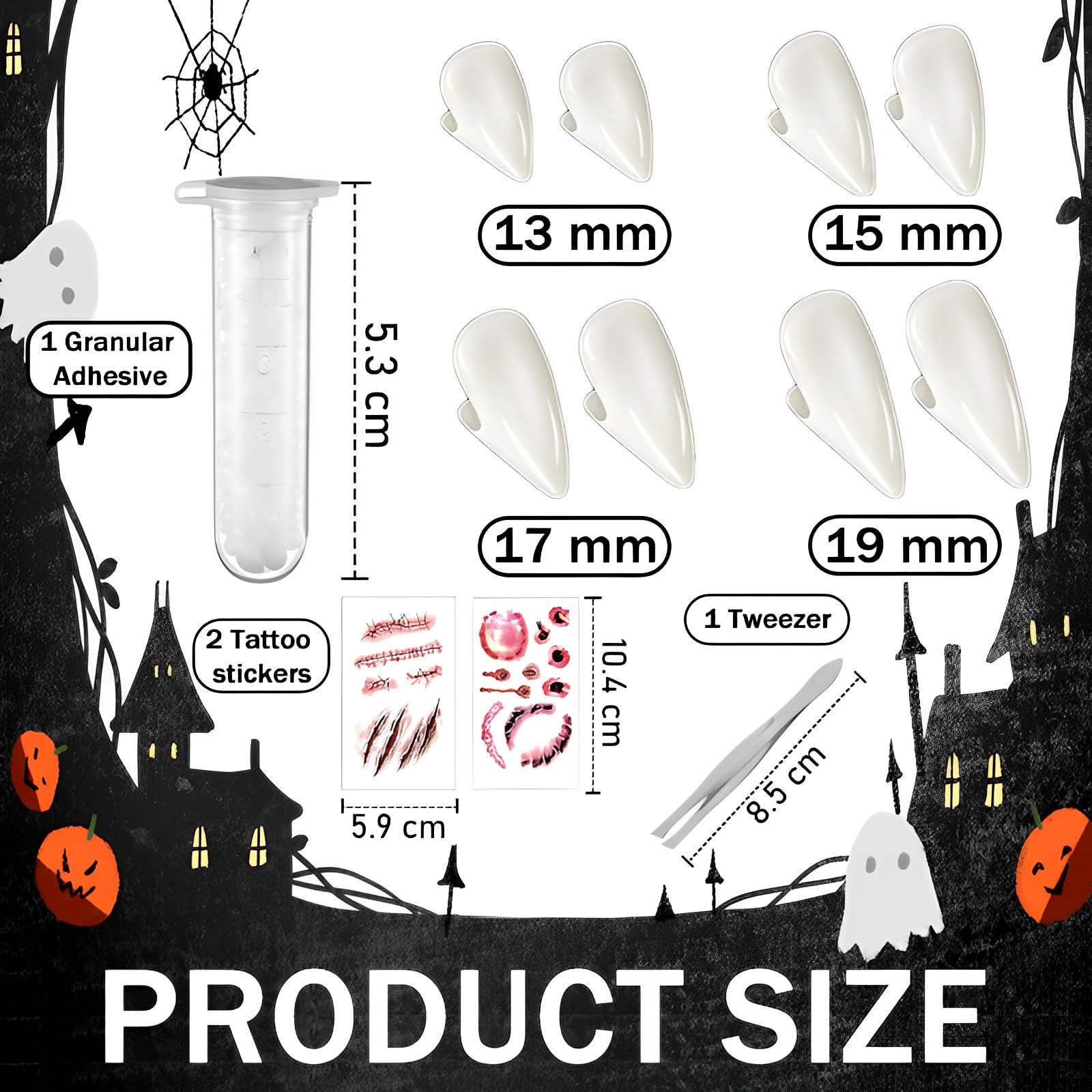 Description du produit Informations sur le produit : Dents de vampire pour Halloween Dents de vampire en 4 tailles différentes, adaptées à votre costume d'Halloween pour rendre votre cosplay de fête d'Halloween plus réaliste et amusant Prothèses dentaires de vampire pour adultes sur le thème Halloween/horreur. Déguisez-vous facilement en Dracula ou en vampire avec ces fausses dents pratiques Ces dents de vampire magnifiquement conçues et réalistes ajoutent du réalisme à votre costume et font de vous la vie de la fête. C'est très simple à utiliser, il suffit de mettre l'adhésif (chauffé dans de l'eau chaude) dans l'appareil dentaire et de l'appliquer sur vos dents, en les maintenant fermement. Vous pouvez retirer ces fausse dent vampire et les utiliser à tout moment. Colle Pour Fausses Dents RUIXUE® Lot De 10 Dents De Vampire Pour Adultes, 4 Tailles De Accessoire Déguisement Vampire Que vous soyez un vampire, un loup-garou ou un zombie, cet ensemble de dent vampire vous aidera à recréer parfaitement l'image de votre personnage. RÉUTILISABLE PLUSIEURS FOIS ET FACILE À RANGER : Notre ensemble de dents de vampire adulte est soigneusement emballé dans une petite boîte transparente pour un transport et un rangement faciles. Cette conception garantit que les dent de vampire adulte peuvent être conservées pendant de longues périodes et réutilisées plusieurs fois. DIFFÉRENTES TAILLES POUR S'ADAPTER À VOTRE PERSONNALITÉ : notre ensemble de dent vampire adulte comprend 4 tailles de dents pour répondre aux besoins personnalisés des différents utilisateurs. Un homme avec des tatouages sur 96 % de son corps obtient des dents de FACILE À UTILISER : Pour votre commodité, nous incluons 1 tube d’adhésif granulé pour dentier vampire dans l’ensemble. Lentilles dents de vampire sur fond noir
