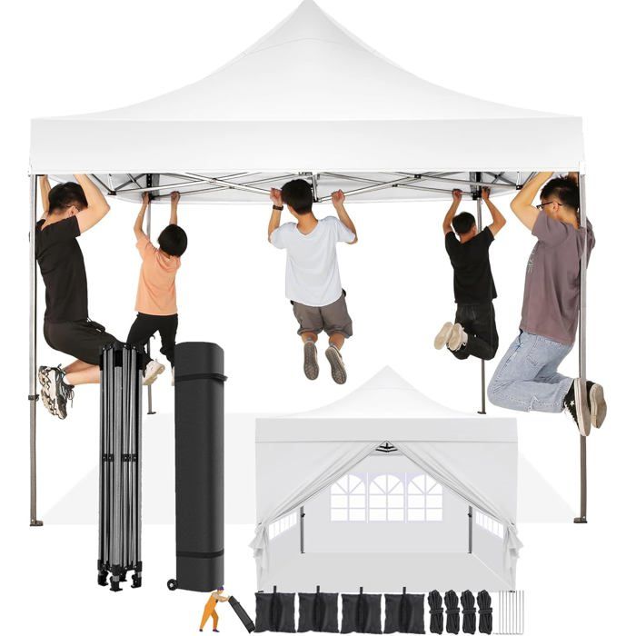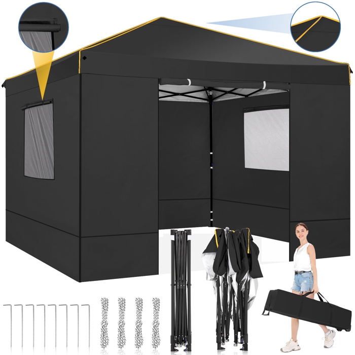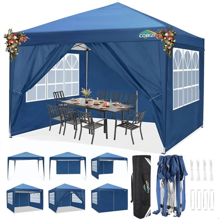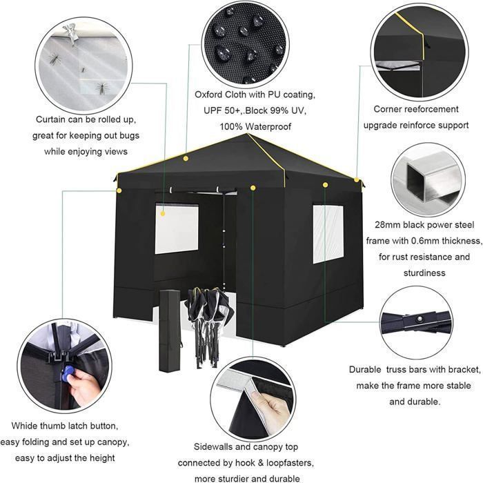 JUMMICO Tonnelle de Jardin 3x3m, Pop up Tente Pliable avec Parois Imperméable Anti UV Respirable Hauteur Réglable avec Sac de Transport Installation Facile Bleu Tonnelle Pliante 3X3 - Tonnelles & pavillons de jardin (1 505)* TOOLUCK Tonnelle Pliante 3x3 Imperméable, Barnum Pliant 3x3 Professionnel, Tonnelle de Jardin Exterieur avec 4 Côtés et 4 Sacs, pour Camping, Plage, Mariage, Fête, Festival, Noir Vendu par : En stock Frais de port : 30,00 【MONTAGE RAPIDE ET SIMPLE】 Grâce à notre design pliant innovant, installez votre tonnelle en quelques minutes ! Dotée d’un revêtement argenté, elle vous protège efficacement des rayons UV, vous permettant de profiter de moments agréables à l’ombre de votre abri. Avec une hauteur ajustable sur 3 niveaux (250/254/258 cm), il est le choix parfait pour vos fêtes, événements commerciaux et cérémonies de mariage. Tonnelle Pliante 3x3 M Imperméable TOOLUCK Tonnelle Pliante 3x3m, Barnum Pliant 3x3 Professionnel,Tonnelle De Jardin Imperméable Tentes De Reception Gazebo De Jardin Avec 4 Sac De Sable,Bleu Foncé Tonnelle Couleur Bleue Pour un montage optimal, nous conseillons la collaboration de deux personnes ou plus. 【PAROIS MODULABLES】Équipée de 2 parois zippées et 4 parois avec fenêtres, cette tonnelle de jardin vous garantit un accès facile tout en préservant votre intimité. En retirant les parois, vous pouvez profiter d'une vue dégagée et d'une meilleure circulation d'air. 【STRUCTURE ROBUSTE ET DURABLE】Fabriquée avec un cadre en métal robuste revêtu de poudre, notre tente offre une protection contre la rouille et une excellente stabilité face au vent. Tonnelle Pliante 3x3 Imperméable, Barnum Pliant 3x3 Professionnel-Gris Attention, il est préférable de démonter la tente en cas de fortes intempéries. MULTIPLES USAGES] Ce barnum pliant 3x6 crée un grand espace pouvant accueillir entre 15 et 20 personnes. Sa hauteur est ajustable à 3 niveaux (250/254/258cm), ce qui en fait le choix idéal pour les fêtes, événements commerciaux et cérémonies de mariage