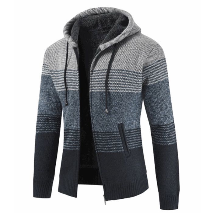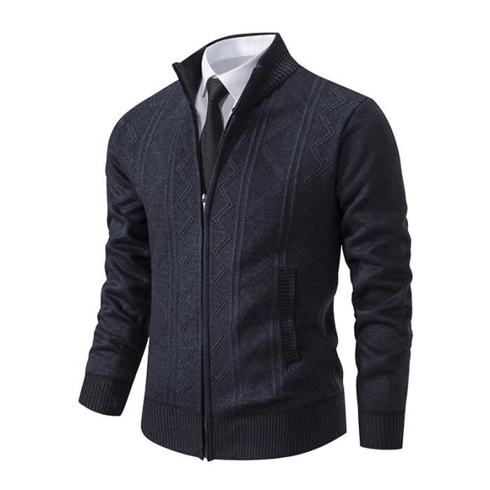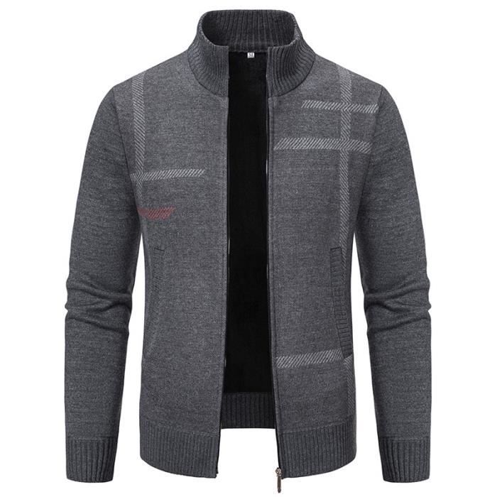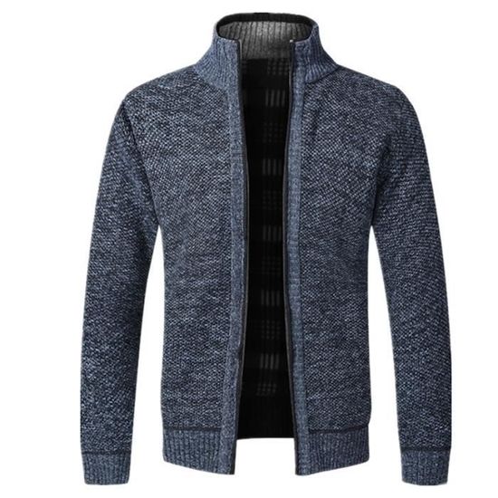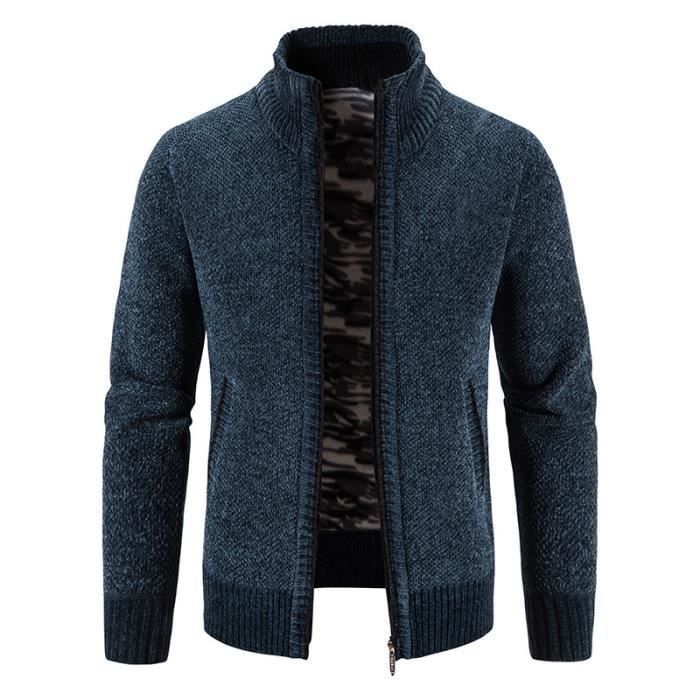 Gilet Zippé Homme En Tricot Doublé Polaire Automne Hiver Cardigan Chaud Epais Col Montant