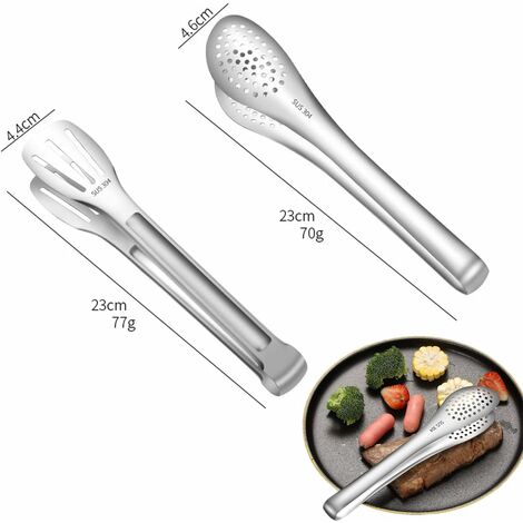 Pince Tête Ronde Et Pointue Cuisine Pince Cuisine Bois Silicone 2 Pince De Cuisson Pince Grille Pain Pince Ustensile Cuisine Professionnel Manche Antidérapant Polyvalentes : Elles conviennent pour cuisiner, frire et servir, décorer des gâteaux et des plats, remuer des aliments, préparer des raviolis et des rouleaux de printemps, ramasser du caviar, des grains de maïs, des pignons de pin et des canneberges, etc. Chaque pince de cuisine mesure 32 cm de long et permet une bonne prise en main ; qualité solide, travail précis. Longueur parfaite. Idéal pour cuisiner, rôtir... Barbecue D'extérieur,Pinces Alimentaires En Acier Inoxydable,Pinces Alimentaires Pour Cuisine · - Générique. Neuf dès 22,67 Matériau robuste et durable : Fabriquées en acier inoxydable de haute qualité, ces pinces de cuisine sont d'une finition soignée, présentent une belle couleur, ne se décolorent pas, résistent aux rayures, à la corrosion, à la rouille, à la déformation et à la casse. 2 pinces pour différents usages. 4 Pcs Pinces De Cuisine En Acier Inoxydable Pince Cuisine Inox 9 Pouces Leur longueur de 30 cm offre une prise en main confortable et se rangent facilement. Quels sont les avantages de nos pinces de cuisine en acier inoxydable ? 1., Fabriquées en acier inoxydable de haute qualité, ces pinces à grillades présentent une belle couleur. Les pinces à tête pointue sont utilisées pour disposer les aliments petits et délicats et permettent des travaux de décoration délicats. Nous nous ferons un plaisir de vous répondre. 2 pinces pour usages variés 5., Idéales pour cuisiner, frire et servir, décorer des gâteaux et des plats, remuer des aliments, préparer des raviolis et des rouleaux de printemps, ramasser du caviar, des grains de maïs, des pignons de pin et des canneberges, etc. Facile à saisir et à utiliser, il est adapté aux travaux précis et délicats. Elles sont durables et stables. Elles permettent de les tenir à l'écart des sources de chaleur et d'éviter les brûlures., 3., Leur manche antidérapant et ergonomique est facile à saisir et à utiliser, et convient aux travaux précis et délicats., 4., Les pinces à tête ronde sont utilisées pour frire et griller, et permettent de retourner les aliments.