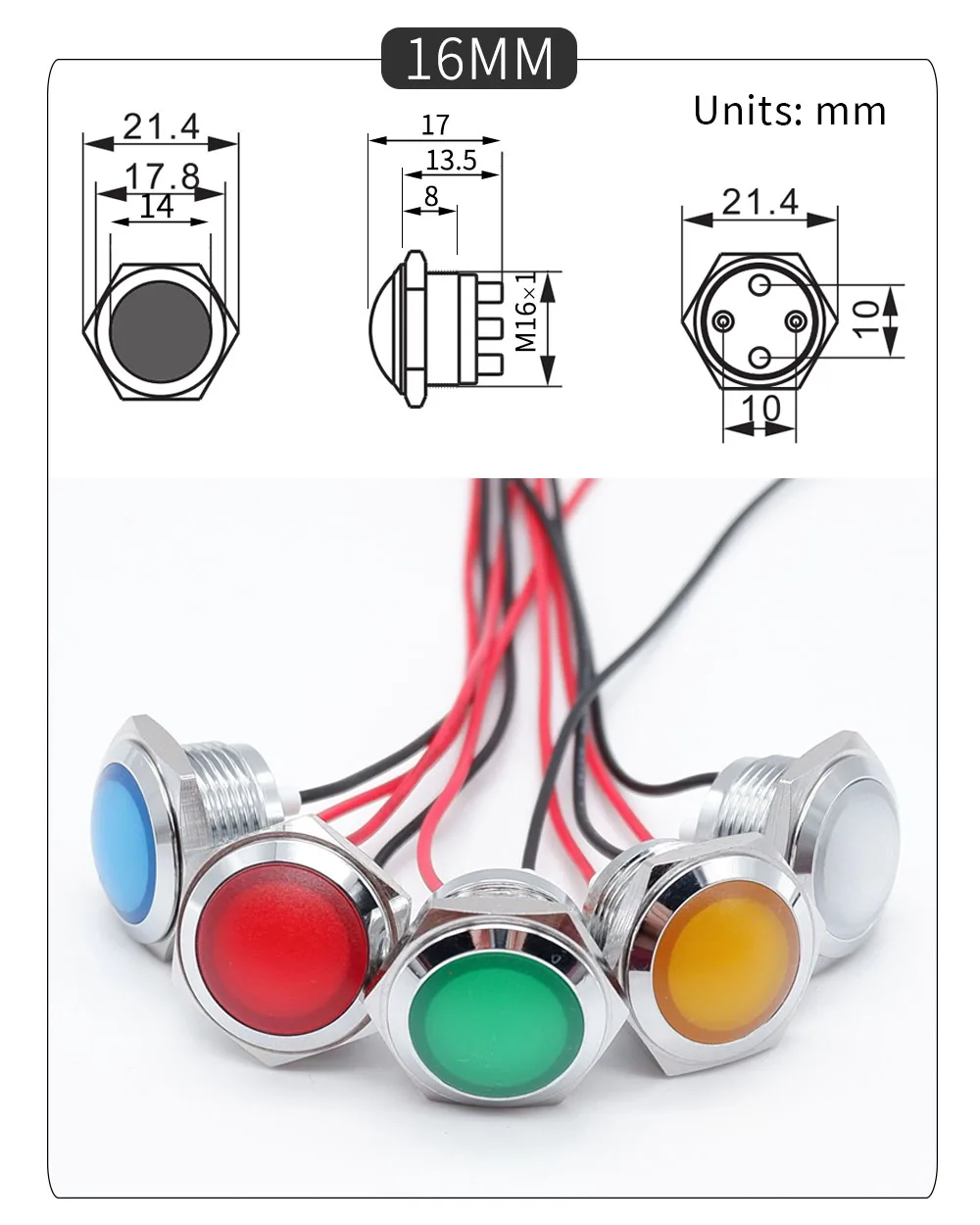 NO.19 12v Latching Aluminnium Alloy Bouton poussoir métallique pour Indicateur étanche Rouge Vert Indicateur Lumineux En Métal De 19 Mm | Cinq Couleurs-voyant Signalétique Industrielle Métal Si vous ne comprenez pas quelque chose, n'hésitez pas à nous consulter. Plusieurs couleurs et spécifications : Options d'ouverture : 6mm, 8mm, 10mm, 12mm, 16mm, 19mm, 22mm, 25mm Couleurs lumineuses : rouge, vert, bleu, jaune. L'éclairage lumineux et doux : Surface matte brillante, compatible AC et DC, LED de faible puissance (<20mA), résistance de déclenchement intégrée. Indicateur étanche LED avec alarme" - Test et Avis Matériaux: boîtier en feuille de cuivre, anneau d'étanchéité en silicone, perles LED infinies de 3 mm, câble de noyau en cuivre de 150 mm de longueur intégré. Matériaux ---- La coque est en cuivre chromé avec bague d'étanchéité en silicone, perles LED infinies de 3 mm et fil de cuivre intégré d'une longueur de 150 mm. Il est étanche, anti-poussière, résistant à la chaleur et ignifuge Par conséquent, en tant que bon vendeur, nous aimerions vous rappeler de vérifier attentivement les spécifications et les tailles avant d'acheter. Plusieurs couleurs et spécifications peuvent répondre à différentes exigences.