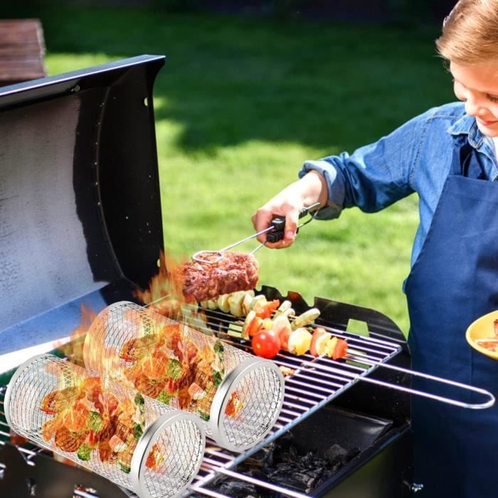 De plus, nous avons perfectionné le couvercle pour garantir que vos aliments ne se renversent JAMAIS pendant la cuisson. La conception de la poignée augmente la sécurité Notre panier de gril nouvellement redessiné avec poignées roule sans effort pour assurer un chauffage uniforme de vos ingrédients. La conception de la poignée augmente la sécurité, vous éloigne de la chaleur directe et réduit le risque de brûlures. Nous attachons une grande importance à un excellent service client et sommes heureux de vous aider en cas de problème lors de l’utilisation. 【Conception Empilée 2 en 1】 Cet ensemble de paniers de barbecue contient des paniers de gril de différentes tailles avec un design empilé innovant 2 en 1., Lorsqu’ils ne sont pas utilisés, les petits paniers peuvent être empilés dans de grands paniers, ce qui facilite le stockage et le transport et permet d’économiser de l’espace supplémentaire. Panier Barbecue Légumes 2 Pièces Panier De Cuisson Pour Barbecue, Acier Inoxydable Cylindre De Panier Gril Roulant BBQ Avec Poignée, Cuisson Accessoire Barbecue Pour Grillades, Légumes, Viande, Poisson Panier à Barbecue 【Panier de Gril Roulant】 Les poignées et les fourchettes permettent un meilleur contrôle pour des ajustements précis et un retournement des aliments. Notre panier de gril peut cuire une variété d’aliments en même temps, tels que des aliments frits, des légumes, de la viande, des fruits, etc. Ne remplissez pas trop le panier du gril cylindrique en acier inoxydable pendant l’utilisation. 【Pas d’éclatement du couvercle】 Ces paniers de gril roulants en acier inoxydable pour gril extérieur sont dotés d’un couvercle encliquetable pratique qui offre une fermeture sûre et étanche par rapport aux autres paniers de gril. Panier De Gril Roulant,20 C Panier À Griller pour Barbecue,Panier de... Description du produit Kimuwote 2 Pièces Panier de Cuisson pour Barbecue Ne limitez pas votre jeu de grillades aux hamburgers et aux steaks ! Parfait pour les pique-, les fêtes, le camping Pour éviter les brûlures, portez toujours des gants résistants à la chaleur lorsque vous sortez le panier après la cuisson. Il assure une cuisson uniforme en permettant à la cage du gril d’être facilement tournée, secouée ou déplacée. Sûr et durable 304 Acier Inoxydable Pour optimiser les résultats de cuisson et faciliter le nettoyage après utilisation, il est recommandé d’appliquer une fine couche d’huile sur l’acier inoxydable avant chaque cuisson. Le barbecue sans compromis : grillez facilement les aliments plus délicats grâce au set de paniers de cuisson pour barbecue BBQ . Il vous permet de laisser libre cours à votre imagination sans faire de compromis sur la qualité Lot De 2 Paniers à Griller En Acier Inoxydable Pour Barbecue Accessoires De Cuisson Pour 1072388 【Matériaux de Haute Qualité】 Le panier à griller roulant est fabriqué en acier inoxydable 304 de qualité alimentaire pour offrir une durée de vie plus longue et plus durable que les paniers à barbecue en fer.