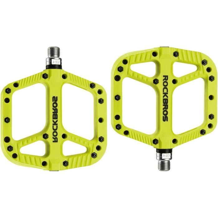 Roulement à haute résistance., Attention : 1., Les nouvelles pédales tournent fermement et doivent être rétractées avant que la lubrification ne soit améliorée. Taille du noyau : 9/16 Couleur : noir. Les pédales de vélo en nylon ont une large plateforme de 10,9 x 10,2 cm (4,29 x 4,02 pouces) sans trous filetés, offrant suffisamment d'espace pour pédaler confortablement, même avec des chaussures plus grandes Antidérapant et excellente prise en main : les pédales plates de VTT conçues avec 9 broches en acier remplaçables par côté offrent une excellente adhérence et une conduite sûre les jours de pluie et les routes cahoteuses. GEWAGE Pédales de vélo, en Fibre de Nylon, avec réflecteurs... Sécurité accrue : les réflecteurs des deux côtés de la pédale augmentent considérablement la visibilité dans l'obscurité et assurent ainsi votre sécurité lors de la conduite de nuit Pédales VTT descente - BMX filetage 9-16 avec picots interchargeables Installation facile : les clous antidérapants des deux côtés des pédales assurent un maintien sûr, même sur des routes boueuses ou inégales, et vous donnent sécurité et stabilité pendant le cyclisme Utilisation polyvalente : convient pour la plupart des vélos BMX, VTT, vélos électriques, vélos de cyclo-cross, vélos pliants et vélos de course, parfait pour les cyclistes occasionnels et professionnels Pédale Shimano Spd Pédales SPD Pédales De Vélo De Route 9/16 Jeu De Pédales Pédales Ultra-légères En Aluminium Électrolytique Roulement DU Pédales Antidérapantes For VTT Convertibles En Pédale Plate ( Color Spécifications: Faciles à installer. KOOOGEAR Pédales de vélo, pédales de VTT avec réflecteurs, roulements à billes 9/16, pédales de plate-forme de vélo pour BMX, VTT, vélos de route Caractéristiques du produit : Matériau : fibre de nylon Contenu de la livraison : une paire de pédales + tournevis hexagonal. Poids : 380 g (une paire de pédales de vélo).