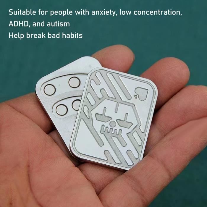 Mini Jouet Poche Anxiete VGEBY Curseur Magnétique Du Bout Des Doigts Curseur De Poussée Magnétique, Jouets Sensoriels De Mini Jouet Poche Ergonomique Résistant aux secousses : des autocollants et des sacs en tissu résistant aux chocs sont ajoutés à l'aimant, et le curseur améliore considérablement la douceur de la soie et ne vous inquiétez plus de la chute de l'aimant. MATÉRIAU MÉTALLIQUE: Le jouet coulissant anti-stress est fabriqué dans un matériau métallique, écologique, ferme et robuste, anti-impact et stable, sans déformation, résistant à l'usure et durable VGEBY Jouet de Curseur à Pousser, Curseur de Fidget en Métal Portable, Flexible, Drôle, Bureau, anxiété, Soulagement du Stress, Pièce Haptique, Pièce de Monnaie Haptique Cool, Clicker : : Jeux et JouetsÀ propos de cet article SOULAGEMENT DU STRESS Liste des paquets :1 xJouet Poker Push Slider 1 x sac de rangement Vous pourrez supprimer les habitudes inutiles, comme se ronger les ongles et fumer. VGEBY Curseur anti-Stress Portable Metal Toy, Adult Metal Adhd Autisme Anxiété Stress, Push C'est une collection parfaite. Vous pourrez supprimer les habitudes inutiles, comme se ronger les ongles et fumer., 3., Cadeaux passionnants : vous pouvez l'offrir à votre père, mari, petit ami et meilleur ami. Vous pouvez jouer au bureau, à la maison, à l'église, dans le métro, dans la gare et dans d'autres endroits. Vous pouvez modifier le jeu du curseur en ajustant le jeu de la vis dans le coin inférieur gauche pour obtenir la sensation la plus confortable. Lorsque vous poussez ce curseur magnétique, les aimants à l'intérieur s'engrènent les uns avec les autres, vous fournissant ainsi un retour de force de la force magnétique. Ainsi, vous pouvez facilement mettre le jouet coulissant dans votre poche. Mini : les jouets de poker push slider sont de poche et portables, suffisamment petits pour être joués d'une seule main. C'est une collection parfaite., 4., Résistant aux secousses : des autocollants et des sacs en tissu antichoc sont ajoutés à l'aimant, et le curseur améliore considérablement la douceur de la soie et ne vous inquiétez plus de la chute de l'aimant., 5., Scènes d'application : les jouets coulissants en métal sont parfaits pour les voyages, le travail, la famille ou la trousse à crayons.