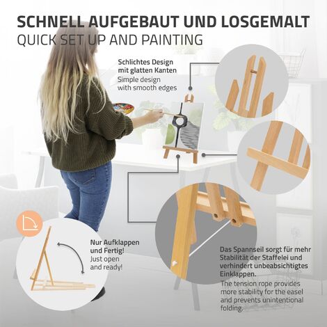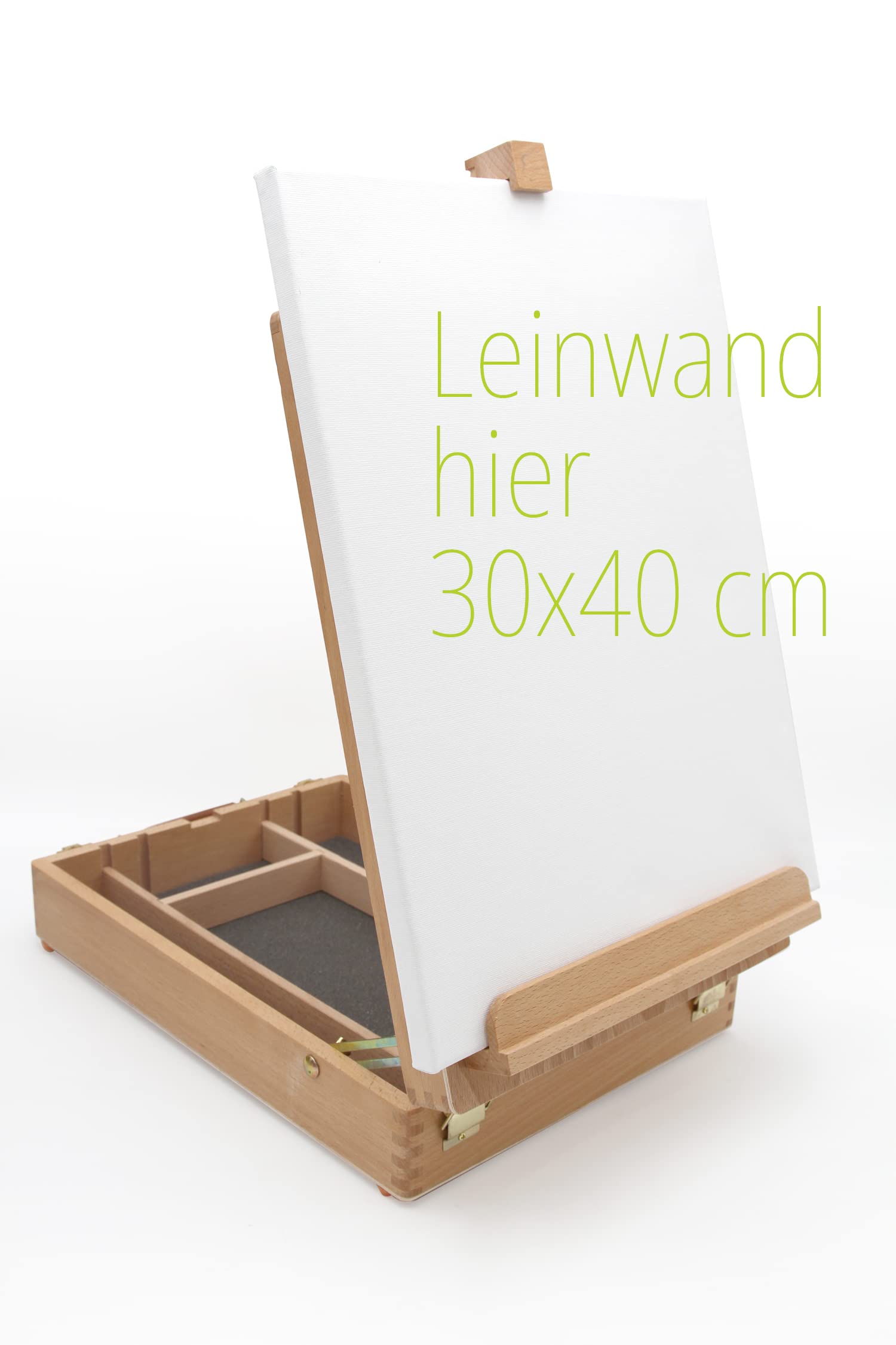 Nous n'utilisons que des vis, des écrous de réglage et des charnières durables. Ce chevalet de table Paintersisters, c'est l'atelier miniature parfait pour les artistes ! Format A3 (43x30 cm), en bois de hêtre solide et joliment fini Nous gardons toutes les pièces de rechange en stock à long terme et vous offrons ainsi un service professionnel même après l'achat Vous trouverez notre gamme complète de produits artistiques de qualité supérieure sous paintersisters-neuss ✔ Poids léger stable avec maintien sûr : le mini chevalet est fabriqué en bois de hêtre léger de haute qualité et ne pèse que 1255 g - Il est donc facile à transporter. ✔ Polyvalent : le chevalet de table est idéal pour le travail créatif et la peinture à la maison sur le bureau et comme équipement complémentaire de studio. Valise Atelier Artiste Paintersisters Luca Mallette En Bois De Hêtre FSC® Chevalet De Table Avec Mallette De Rangement Pour Matériel, Châssis Jusqu'à 60 Cm De Hauteur Chevalet Assis Tiroir ✔ Mallette de peinture réglable en bois de hêtre : le chevalet de table de 33,5 x 25,5 x 5 cm avec angle d'inclinaison réglable possède un compartiment de rangement pratique. Les pieds en caoutchouc discrets sur la partie inférieure assurent un support antidérapant et stable, ce qui permet de travailler en toute sécurité avec différents supports de peinture et sur diverses surfaces. ✔ Inclinaison réglable : la surface de travail réglable vous permet d'orienter le chevalet en fonction de vos besoins individuels et de vos habitudes de travail. Le support de travail pratique est réglable jusqu'à un angle de 90° sur la grille en bois intégrée. Chevalet D'Artiste Pliable Réglable Dessin Peinture Portable Chevalet Elle est fabriquée en bois de hêtre élégant et possède des boucles en laiton doré et une poignée de transport renforcée aspect cuir. Chevalet Le chevalet est un outil portatif permettant à l'artiste de tenir sa toile lors de son travail de réalisation. Adaptés à tous les endroits, ils existent sous différents formes : le chevalet de campagne plutôt connoté paysage et grand air, le chevalet de table pour le dessin en intérieur, le chevalier d'atelier en bambou est un outil léger et solide, ou encore la table à...