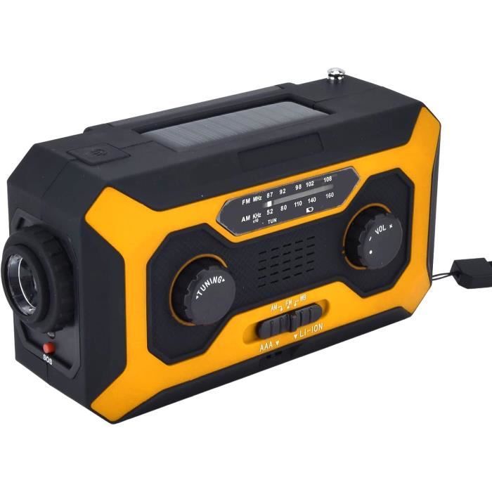Lumière LED lumineuse : la banque d'énergie solaire peut être utilisée comme torche dans l'obscurité et en cas d'urgence. Radio D'Urgence Avec Manivelle Solaire Et Manivelle -Alimentée, Batterie Usb Recharge Fm-Am Chargeur solaire portable avec 2 sorties et 1 entrée : Les 2 ports de sortie USB peuvent charger 2 appareils simultanément à une vitesse élevée de 2 A. Fonctionne avec tous les iPhone/tablettes, autres téléphones portables et appareils électroniques 1 x manuel (langue anglaise non garantie)., 1 mousqueton., Veuillez noter: 1., Veuillez le charger complètement via la prise pour la première utilisation pour activer complètement ce panneau solaire., 2., Veuillez utiliser des accessoires ou des spécifications de câble correctes pour charger le réservoir solaire, sinon il peut être endommagé., 3., Avant de charger votre appareil, assurez-vous que la tension d'entrée de l'appareil correspond à la tension de sortie de la banque d'énergie solaire., 4., Il est strictement interdit de battre, battre, démonter ou réparer ce produit lui-même., 5., Ne placez pas le ballon solaire dans un endroit humide et ne le versez pas., 6., Si vous rencontrez une petite quantité de liquide s'écoulant de la poignée du produit, ne vous inquiétez pas, ce liquide ne s'écoule pas de la batterie. Panneau solaire et nouvelle fonction dynamo manuelle : Équipé d'un panneau solaire compact, le chargeur de téléphone portable peut être rechargé à la lumière du soleil en cas d'urgence. C'est le lubrifiant qu'on met sur les engrenages de la poignée. Contenu de la boîte : 1 x banque d'énergie solaire à manivelle., 1 câble USB. Les cellules de batterie Li-polymère de qualité supérieure intégrées et les multiples systèmes de protection garantissent que vous et vos appareils êtes en sécurité grâce au mécanisme de protection contre les surcharges, les surintensités, les décharges excessives, les surtensions, les courts-circuits et plus encore. Capacité de la batterie au lithium polymère : 12000 mAh. Batterie Solaire Radio D'Urgence, Radio Météo À Manivelle Solaire, Chargeur De Téléphone Portable 2000 Mah Avec Power Bank Avec Manivelle Ce lubrifiant permet aux engrenages à l'intérieur du produit de vivre plus longtemps et de mieux fonctionner. Le chargeur solaire 12000mAh fournit suffisamment d'énergie à vos appareils lorsque vous faites du camping, de la randonnée, des aventures en plein air et autres voyages. Vous pouvez également effectuer un appel de survie par manivelle en cas d'urgence sans électricité ni énergie solaire. Grand succès lors de typhons, de tremblements de terre et de catastrophes en plein air. Grâce aux... Fonctionne avec tous les iPhone/tablettes, autres téléphones portables et appareils électroniques. Priorité sûre avec certificats standard : la banque d'alimentation du chargeur solaire répond aux normes de divers tests, y compris CE, FCC, UL, ROHS et plus encore. Matériau : lumière LED ABS respectueuse de l'environnement : température de couleur : 6000 ~ 7000 K, circuit de protection intégré sécurisé de 100 lm pour éviter les surcharges, les décharges excessives, les surintensités et les courts-circuits. De plus, les batteries que nous utilisons sont des batteries au lithium polymère de qualité A sur le marché, et non des batteries de qualité inférieure. 4 modes d'éclairage : lumière forte/douce/stroboscope/SOS, idéal pour les activités de plein air telles que le camping, la randonnée, les voyages et autres urgences. Vous pouvez passer un appel de survie en démarrant manuellement sans électricité ni solaire en cas d'urgence. Lumière LED lumineuse : Lumières LED intégrées intelligentes. Sortie : Double USB 5 V 1 A / 2,1 A.