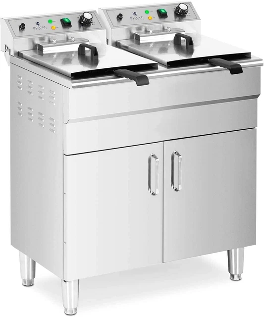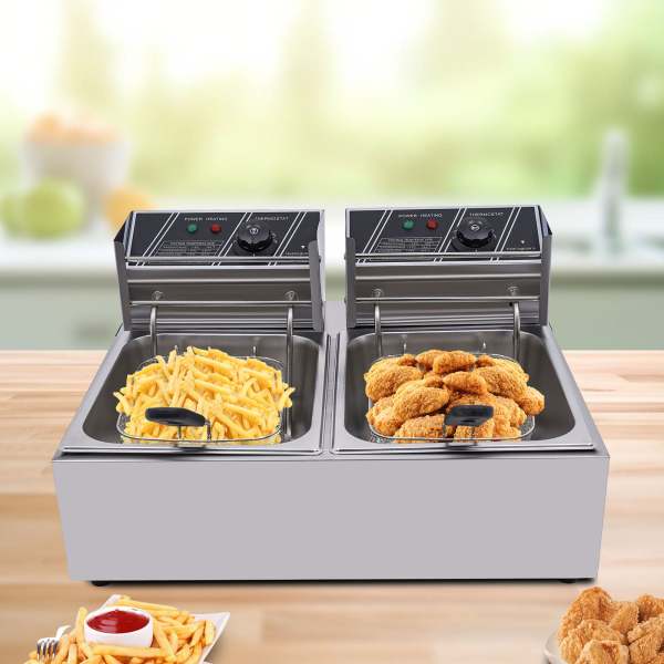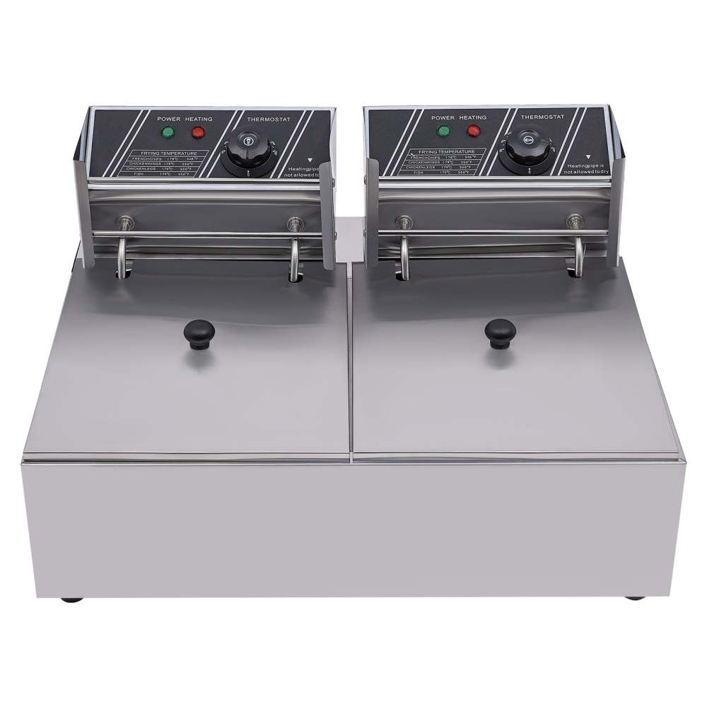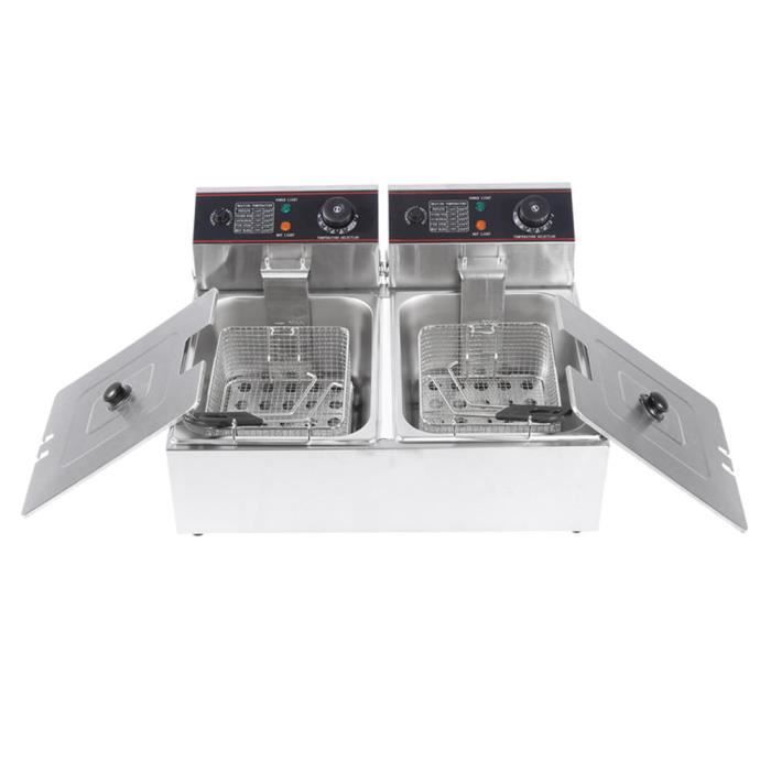 2 plaques de résidus en acier inoxydable. Idéal pour cuisiner des frites, des rondelles d'oignon, des omelettes, du poulet frit, des crevettes panko et d'autres aliments frits. Le tube chauffant distribue la chaleur uniformément et rapidement Caractéristiques : Couleur : argenté. Si le besoin est faible, vous ne pouvez utiliser qu'un seul réservoir pour frire les aliments et ainsi économiser de l'énergie. 【Contrôle indépendant】 : il dispose de deux friteuses de contrôle indépendantes de la température, de sorte que vous pouvez facilement ajuster la température (60-200 ℃/140-392 ℉) pour répondre aux exigences de température des différentes friteuses. Rapide et uniforme : cette friteuse électrique à double réservoir a deux fentes de 4,83 Qt, avec une puissance de 2,5 + 2,5 kW, et peut être chauffée rapidement. Le tube chauffant en forme de U avec capteur de température assure un chauffage uniforme, de sorte que vous pouvez rapidement préparer de délicieux plats. Friteuse Électrique 12L,Acier Inox,5000W,60 ~ 200 ℃,Avec indicateur LED et Panier,Thermostat réglable. 4,5 / 5. 4 avis. En 1 fois Matériau : acier inoxydable. Friteuse Professionnelle électrique pro 600 mm - 10 Litres - 7,5 kW - Gastro M Friteuse Electrique Avec Huile Friteuse En Acier Inoxydable Avec Contrôle De Température Et Support De Filtre à Huile Friteuse Professionnelle 2 couvercles en acier inoxydable. Longueur du panneau de commande : 24,6 cm. Longueur de la poignée du panier : 20 cm. Dimensions du panier : 20 x 17,2 x 10,5 cm. Dimensions totales : 55 x 44 x 30 cm.
