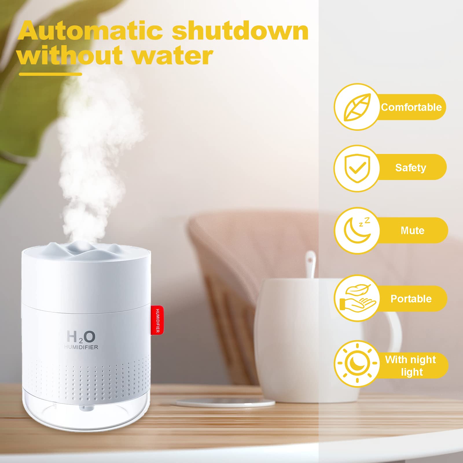Son attrait esthétique en fait un complément parfait à votre maison ou votre bureau, créant une atmosphère chaleureuse et accueillante. Décoratif : cet humidificateur mignon en forme d'ours sert également de décoration amusante pour votre chambre, ajoutant à la fois fonctionnalité et charme esthétique. Fonctionnement ultra silencieux : avec un niveau sonore inférieur à 30 dB, cet humidificateur fonctionne silencieusement, vous assurant une nuit de sommeil paisible. Il soulage également l'inconfort causé par la mauvaise qualité de l'air, aidant à soulager les irritations respiratoires et créant un environnement respiratoire plus confortable. Mesurant seulement 120 × 68 × 107 mm, il s'adapte parfaitement à votre bureau, table de chevet, ou même dans votre voiture. Humidificateur à brume froide, affichage numérique, double brume, arrêt L'éclairage doux sert à la fois de veilleuse fonctionnelle et de décoration pour votre chambre. Avantages pour la peau et la santé : idéal pour les peaux sèches, cet humidificateur aide à prévenir la déshydratation de la peau et la desquamation causées par l'air sec. CSPARKV Humidificateur, Humidificateur d'air, 400 ml, super silencieux... Veilleuse LED Silencieux Humidificateur à Ultrasons Pour Chambre à Coucher, Fonctionnement Silencieux Avec Veilleuse Et Arrêt Automatique, Brume Réglable, 16 Heures De Temps De Fonctionnement Et Filtre Inclus Humidificateur D'air Bebe Non seulement il fonctionne comme un humidificateur, mais il sert également de charmante décoration de bureau ou de chevet. Avantages pour la santé : cet humidificateur aide à prévenir la peau sèche et l'inconfort respiratoire en ajoutant de l'humidité à l'air, rendant votre pièce plus confortable. Compact et pratique : cet humidificateur ultrasonique de 300 ml est conçu pour fournir une brume rafraîchissante tout en conservant une petite taille portable. Mesurant seulement 120 × 68 × 107 mm, il s'adapte parfaitement à votre bureau, table de chevet, ou même dans votre voiture Compact et pratique : cet humidificateur ultrasonique de 300 ml est conçu pour fournir une brume rafraîchissante tout en conservant une petite taille portable. Veilleuse améliorant l'humeur : cet humidificateur dispose d'une veilleuse intégrée avec éclairage LED coloré, créant une ambiance apaisante et romantique. Contenu : 1 humidificateur de 300 ml., 1 câble micro USB. Que vous ayez une peau sèche, un air bouché ou des troubles de l'humeur, cet humidificateur vous aidera à créer une atmosphère plus agréable.