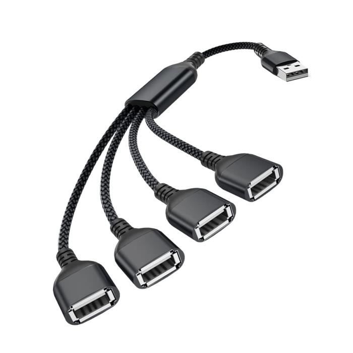 Transfert rapide et stable: Le répartiteur USB 2., 0 prend en charge une vitesse de transfert allant jusqu’à 480 Mbps, garantissant une synchronisation fiable et fluide. Câble USB Répartiteur 4 Ports 0.3 Mètre, 4 en 1 Type A Mâle vers 4 Femelle USB 2.0 Splitter Nylon, Multiprise Extender Hub Chargeur Split pour PC, Mac, TV, Voiture, PS4, PS5, Xbox One X/S Fiabilité: design robuste pour un usage quotidien intensif. Les câbles à âme en cuivre haut débit assurent un flux de courant stable et minimisent les risques d'oxydation ou de corrosion, garantissant ainsi des performances fiables et durables Avec 2 A et 5 V comme valeurs nominales, il assure une alimentation stable et sécurisée pour vos périphériques Compatibilité universelle: Ce 4 en 1 type A mâle vers femelle splitter nylon est compatible avec PC, MacBook, TV, smartphones, tablettes et appareils OTG. Fonctionne également sur PS4, PS5, Xbox One X/S et même en voiture. Adaptateur de panneau d'extension multi-hub USB répartiteur 4 ports USB... En résumé, ce répartiteur USB 2., 0 de 0., 3 mètre est une extension pratique, fiable et durable. USB HUB 4 en 1 Type C vers USB 3.0 5Gbps, 4 ports adaptateur pour Apple Multiprise Usb BASESAILOR Câble USB Répartiteur 4 Ports 0.3M,4 En 1 Type A Mâle Splitter Nylon Tressé Pc Ps5 Que ce soit pour le chargement ou la transmission de fichiers lourds, ce câble multiport assure performance et stabilité. Grâce à sa construction en nylon et aluminium, il offre une résistance exceptionnelle et une utilisation prolongée. Avec ce câble multiport USB 4 en 1, vous disposez d’une solution efficace pour étendre la connectivité de vos appareils et profiter d’une organisation optimisée, que ce soit pour le travail, le divertissement ou les déplacements. Qualité robuste et endurant: Fabriqué en nylon tressé et aluminium, ce câble multi chargeur est conçu pour résister à la torsion, aux plis et à l’usure du quotidien. Son fonctionnement plug-and-play simplifie l’usage sans nécessiter d’installation de pilotes