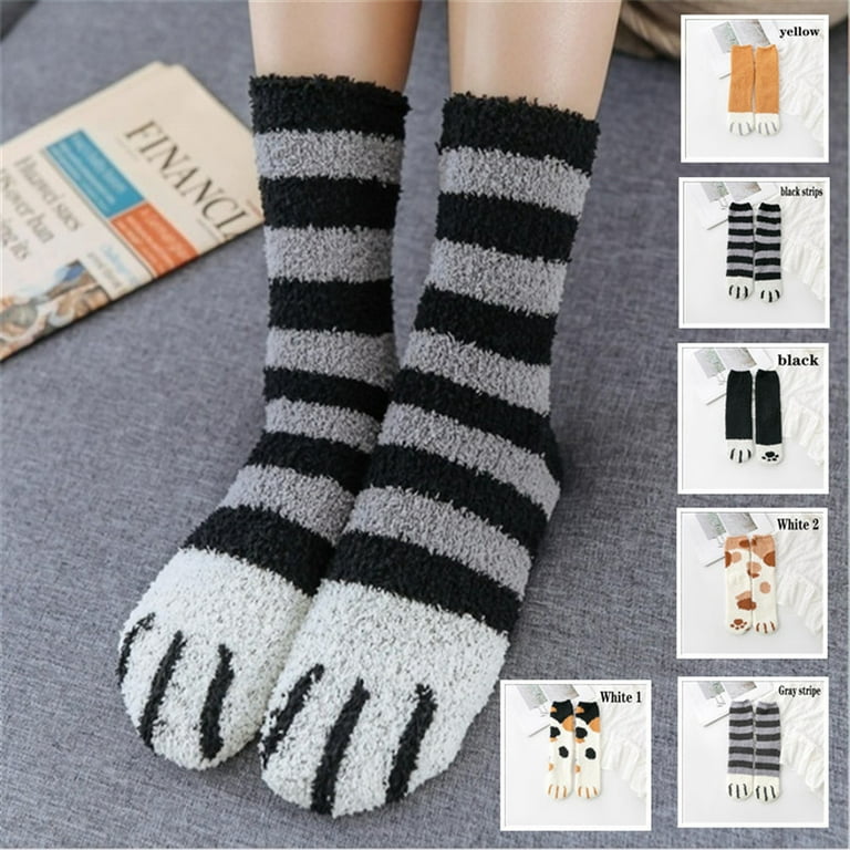 Chaussettes Sommeil Confortables HIDRUO Cat Claw Socks, Women's Fuzzy Socks Cozy Soft Fluffy Chaussettes Chaudes D'hiver Pour Dormir Wearing cozy socks on your feet is as comfortable and warm as being wrapped in cotton. Cute Cartoon of Cat: Each pair of fluffy socks is cute and novelty. And fuzzy cat socks have a unique cartoon design of a cat, including a cat's claw, and cat-like features. These cute soft comfy socks will bring pleasure and personality to your life Wearing cozy socks on your feet is as comfortable and warm as being wrapped in cotton. Sleeping socks will keep your body warm and stabilize your rhythm so you can have a nice deep sleep with bed socks in winter keep your feet warm and comfortable in cold weather. Sleeping socks will keep your body warm and stabilize your rhythm so you can have a nice deep sleep with bed socks in winter. Fuzzy socks for women are very comfortable to wear as sleep socks when you stay at home or go out, you can wear them barefoot at the house. One Size - The size of our slipper socks is suitable for women in US sizes 6 to 10., Soft socks with elastic bands at the ankle do not compress your legs giving you a comfortable wear experience for everyday activities and even during sleep. 6 paires de chaussettes pantoufles pour femmes Caractéristiques : respirant, absorbant la transpiration, antistatique Convient pour la saison : automne, hiver, printemps. Une sensation relaxante super douce et moelleuse qui réchauffe vos pieds pendant le sommeil d'automne et d'hiver. Ces chaussettes en peluche sont super douces, extensibles et durables, offrant un maximum de confort et de chaleur à vos pieds. One pack includes 5 pairs of cozy socks for women. The style and quantity are consistent with the picture. Chaussettes pelucheuses pour femmes, pantoufles chaudes et moelleuses d'hiver, chaussettes douces et mignonnes en forme d'animal de chat Chaussettes à motif de chat mignon pour femmes et filles Matériau : polaire corail.