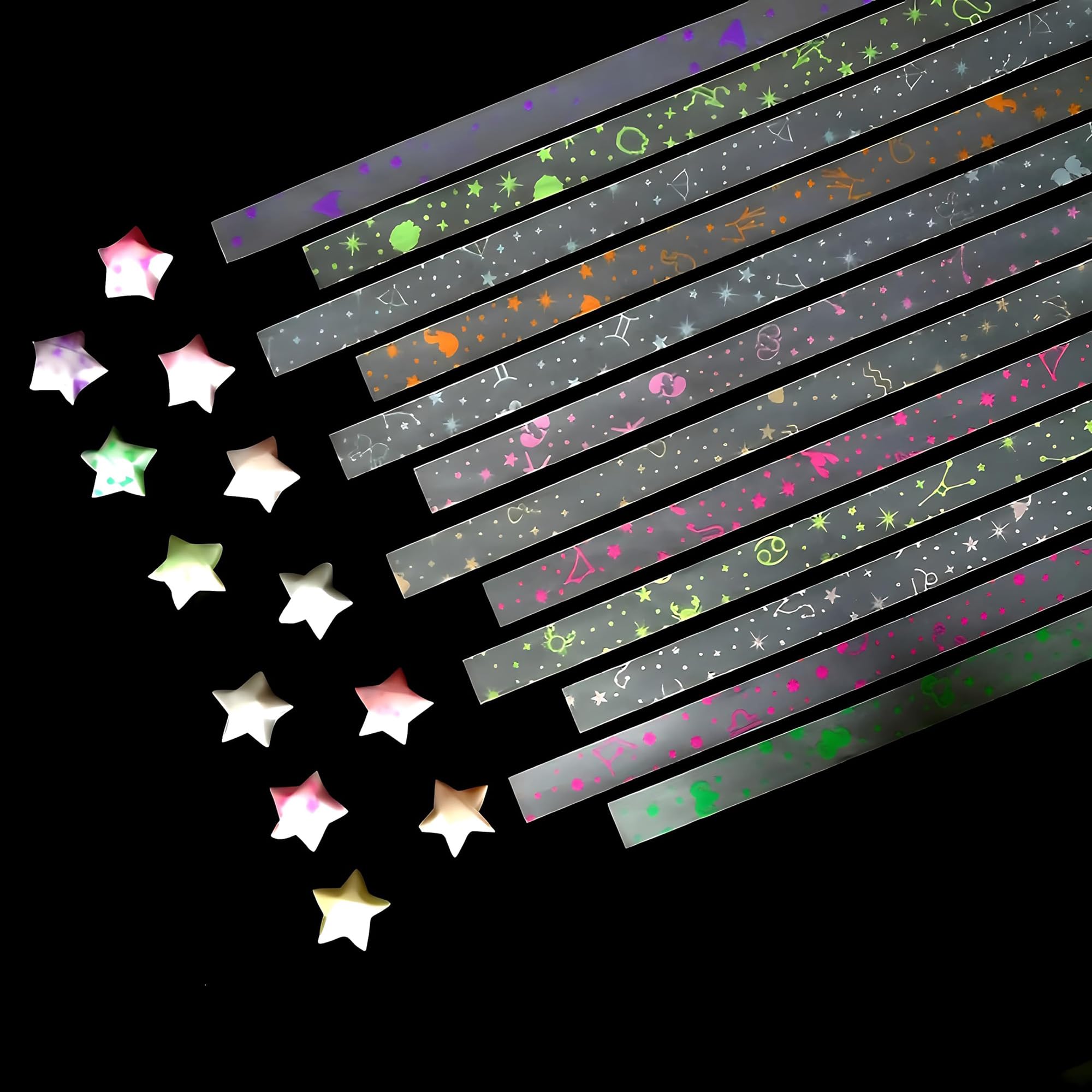 Remarque : Vous pouvez mettre la bande de papier origami étoile dans un endroit lumineux ou au soleil pendant 1 à 2 heures avant utilisation pour obtenir le meilleur effet lumineux. Le papier étoile porte-bonheur avec des motifs de constellation peut briller dans le noir. Décorer avec des étoiles lumineuses peut ajouter à l'atmosphère romantique et surprenante., Qualité supérieure. Également un cadeau parfait pour tous ceux qui aiment le bricolage L'utilisation des étoiles à paillettes pour décorer rendra vos cadeaux, fêtes ou célébrations plus uniques Paper Star Lot De 540 Feuilles De Papier Origami Avec 12 Constellations Porte-bonheur Et Galaxie, 8 Motifs Différents De Beau Ciel étoilé Pour Loisirs Créatifs, Papier Pliable étoile Pastel (B Paper Star Strip Contenu de l'emballage : 480 bandes de papier origami étoilées. Cadeau parfait : vous pouvez écrire vos bénédictions sur les bandes de papier pliables et faire des étoiles porte-bonheur à offrir à la famille et aux amis. Vous aurez une excellente expérience d'utilisation. Design pailleté : le papier Lucky Star est un motif pailleté. 210 pièces de bandes de papier origami étoile lumineuse - Design étoilé coloré double face pour l'artisanat, les kits d'art, les projets scolaires et plus L'étoile porte-bonheur est un symbole d'amour pur, d'amitié pure et de bonheur de bon augure. Le personnel de bureau, les étudiants et les enseignants peuvent décompresser et se détendre en pliant les étoiles porte-bonheur. Disponible en 12 couleurs vives, 40 feuilles de chaque couleur., Dimensions : 1 x 24 cm Les bandes de papier ont une épaisseur modérée et sont faciles à plier. Bandes d'étoiles origami de couleurs assorties. - Il peut être utilisé dans l'obscurité, peut être largement utilisé sur tous les projets d'artisanat de bricolage en forme d'étoile Kit de pliage en papier de taille moyenne, 400 bandes origami bricolage étoiles porte-bonheur. 24,5 cm x 1,2 cm. (Série de papier scintillant 4D). #SPK-194. - France Caractéristiques : Motif : constellation., Couleur : 12 couleurs., Dimensions : 1 x 24 cm.