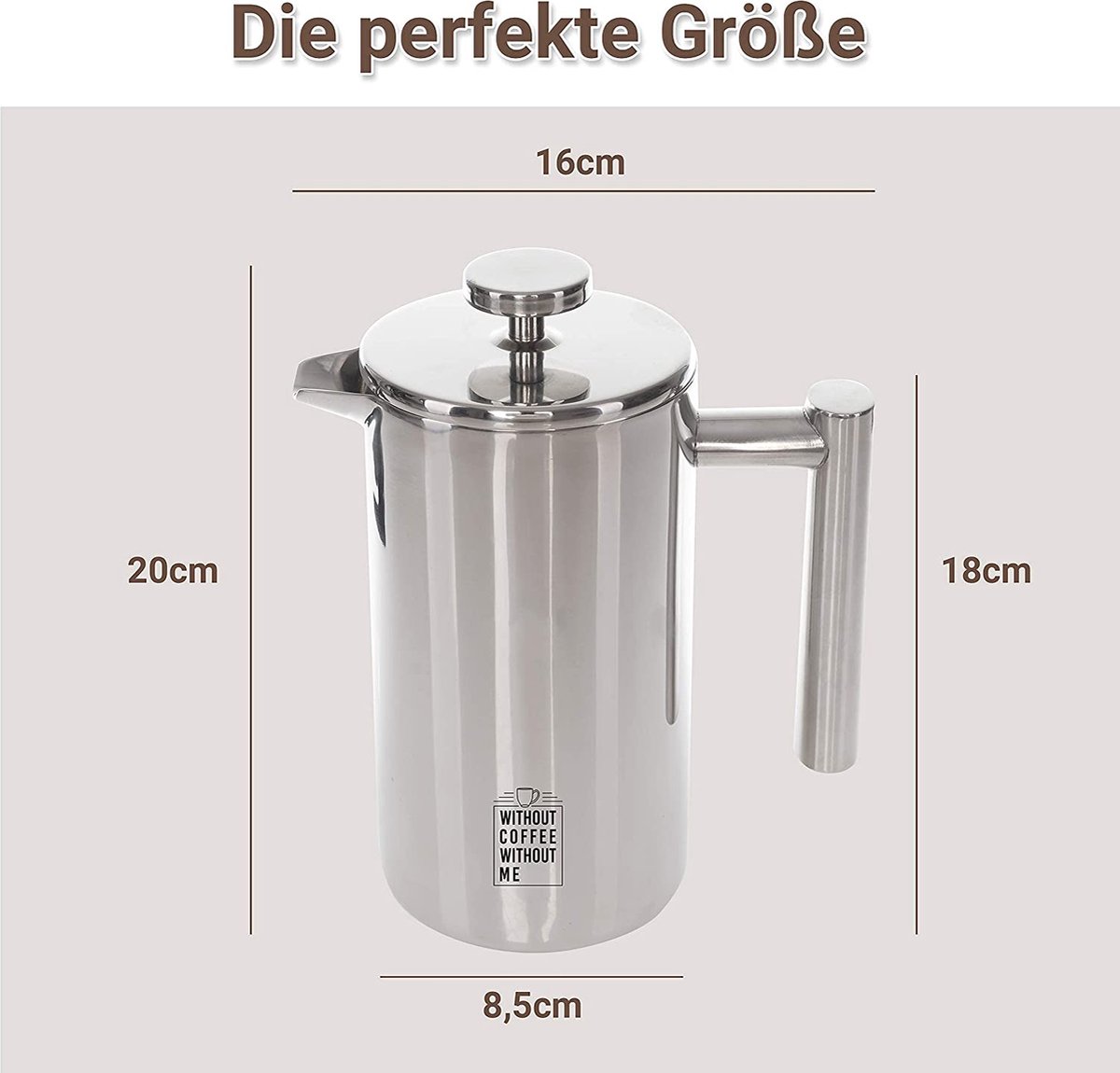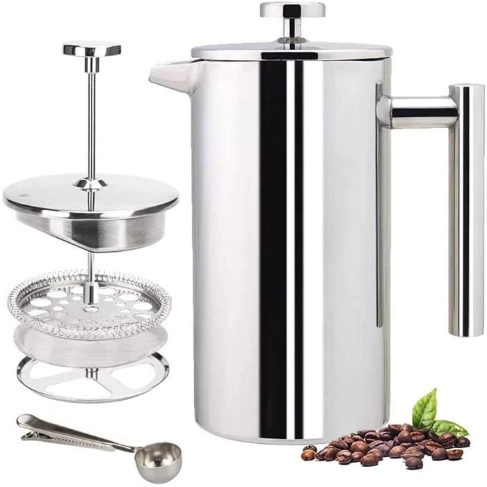 Envie d'un petit café ? Cette petite cafetière à piston permet de produire 350 ml de café, ce qui équivaut à trois petites tasses ou à une grande tasse. Utilisez-la tous les jours et savourez un café riche et aromatique en toute simplicité. Robuste et élégant : avec un pichet en verre borosilicate résistant à la chaleur et un cadre en acier inoxydable à effet cuivre Design traditionnel : cette cafetière classique reste simple avec des courbes douces et un café délicieusement savoureux Le support comprend également une poignée large, recouverte de silicone pour plus de confort et de protection contre la chaleur. Conçue dans un souci de durabilité, cette cafetière est dotée d'un gobelet en verre borosilicate résistant aux chocs thermiques et à la chaleur, enchâssé dans un solide support en acier inoxydable qui résiste à la rouille et est conçu pour durer Cafetière Cadeau élégante Cafetière Piston Roma - 12 Tasses 1.5L, Acier Inoxydable, Filtre Métal Réutilisable Café Aromatique Maison Filtre en maille fine : le filtre en acier inoxydable réutilisable et résistant à la rouille garantit un breuvage doux et aromatique sans transfert de goût INFO UTILE : livrée dans un emballage cadeau sécurisé ; la carafe peut être lavée au lave-vaisselle ; garantie de 1 ans. Service unique : cette cafetière à piston de 350 ml permet de préparer jusqu'à 3 tasses (de 116 ml) Filtre de rechange inclus. Filtre Maille Fine Réutilisable Cafetiere A Piston En Acier Inoxydable - Achat & Prix Cafetière Piston Inox KICHLY Cafetière à piston en acier inoxydable - Machine à expresso et à thé portable avec triple filtre - Verre résistant à la chaleur avec piston en acier - 12Oz (0,35 Liter) - argenté C'est un cadeau original pour tous les amateurs de style simple et élégant et de bon café. Un nom tout trouvé, donc, pour cette cafetière traditionnelle en métal. Le verre à bec peut être mis au lave-vaisselle, tandis que le support doit être lavé à la main pour un résultat optimal. Forte de sa longue et fière histoire, Rome est la ville où tout a commencé. Le pichet est fabriqué en verre borosilicate résistant aux chocs thermiques et repose solidement sur un support en acier inoxydable robuste et résistant à la rouille. SERVIETTE UNIQUE : cette presse française de 35 ml permet de préparer jusqu'à 3 tasses (de 116 ml).