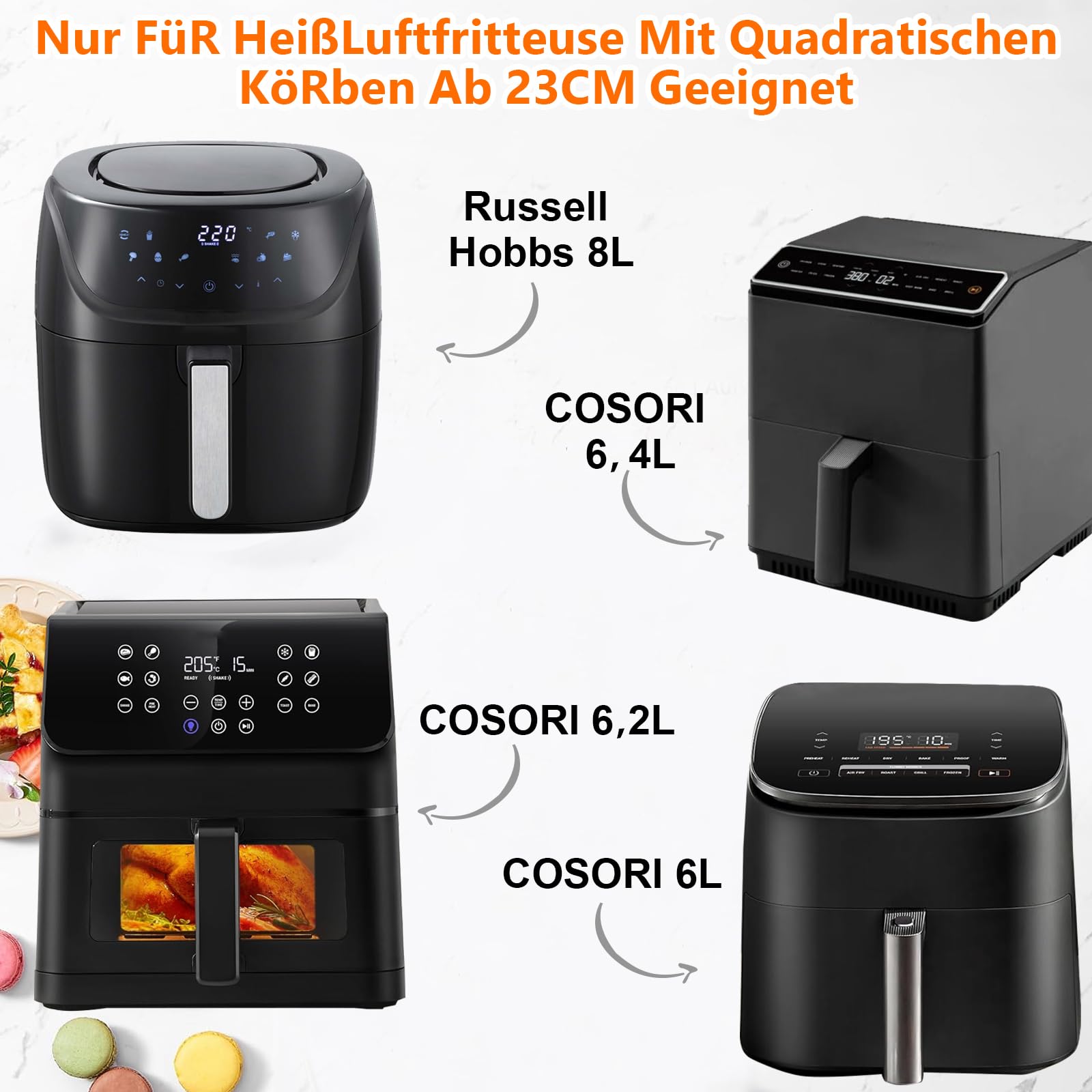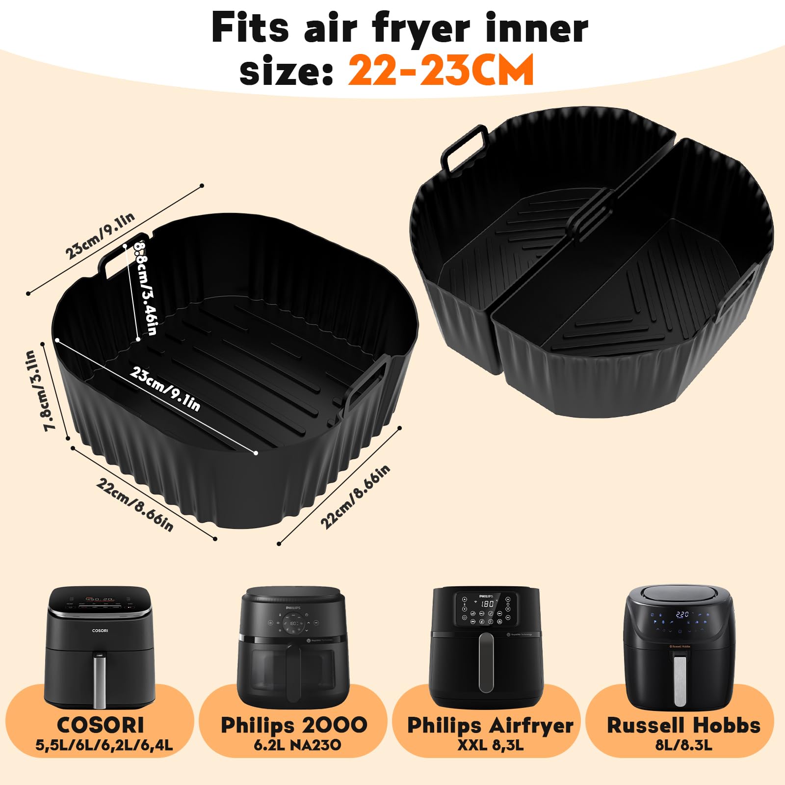 La surface est traitée avec un procédé antiadhésif spécial, et les résidus d'huile s'éliminent en un seul rinçage. Moule en silicone de qualité alimentaire pour iteuse à air Russell Hobbs 27681-56 9L - 2 compartiments (2x4,5 L), double zone, réutilisable et antiadhésif 【Moule Silicone Air Fryer】: Ce Moules silicone Air Fryer ajustement parfait pour Philips 4., 2L: NA229/00, 6., 2L: NA230/00, HD9270/90, für Ninja 4., 7L: AF140EU/ 6., 2L: AF180EU, für Cosori 4., 7L: CAF-L501/ 5., 5L: CP158, für Russel Hobbs 4L. Lavable à la main ou en machine, il libère vos mains et vous fait gagner du temps et de l'énergie. Cela sépare efficacement les aliments de la couche de graisse, augmente considérablement le taux d'évacuation de la graisse de la viande et garantit des résultats de cuisson plus frais et plus croustillants. 【Évacuation de l'huile améliorée, meilleur goût】 : Le renflement central unique, l'indentation périphérique et les rainures 3D surélevées permettent d'évacuer automatiquement la graisse dans les rainures latérales pendant la cuisson. Idéal pour les petites familles ou les couples de 1 à 3 personnes Plat Pour Air Fryer Ninja Accessoires Air Fryer Philips 2000 6,2l 【Durable et facile à nettoyer】 : Ce Airfryer moule silicone adopte une conception indépendante et épaisse, qui ne se déforme pas sous une chaleur élevée et est durable. Deux moules en silicone sont inclus, vous permettant de préparer un ou deux plats simultanément, pour un gain de temps et d'efficacité. Que ce soit pour cuire des frites croustillantes, des légumes ou des gâteaux, ce moule en silicone vous garantit une cuisson saine et sûre. Les moules en silicone protègent la casserole intérieure de la friteuse à air, empêchant les aliments de brûler et de coller au fond. Ils sont faciles à... Moule Silicone Air Fryer Plat Pour Air Fryer Ninja Accessoires Air Fryer Philips 2000 6,2l 2 Moules Silicone Air Fryer 23cm - Pour Philips, Cosori, Russell Hobbs - Platine Panier Air Fryer Philips Air Fryer Cosori Son nettoyage est simple et rapide.