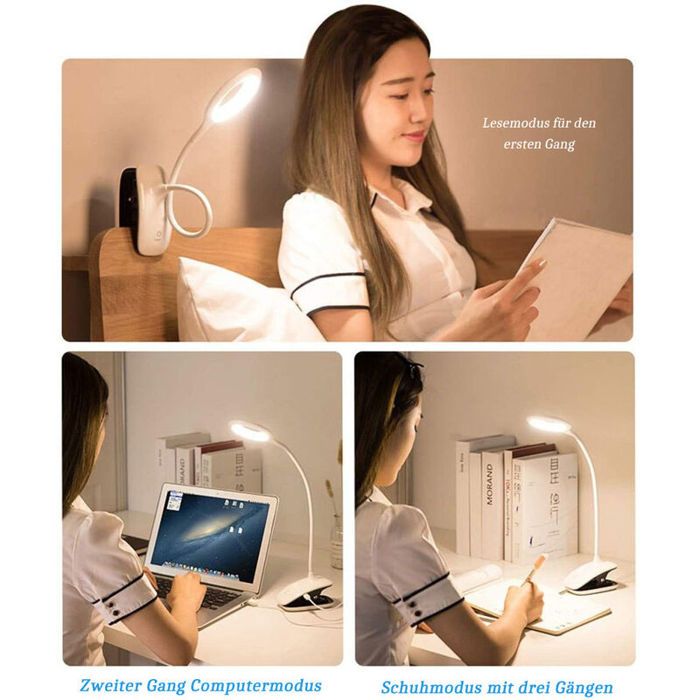 Lampe De Bureau à Pince, Lampe De Lecture Led Flexible Avec Lumière Adjustable En 3 Couleurs Et éclairage Lecture Lit Bureau Méthode de contrôle : fonctionnement à un seul bouton. Utilisant le port USB Type-C largement adopté, elle se recharge complètement en seulement 120 minutes et prend en charge la recharge pendant son utilisation. La lampe de bureau reste pleinement fonctionnelle pendant le chargement, bien que l'efficacité du chargement puisse être légèrement réduite lorsqu'elle est utilisée simultanément. Que ce soit dans votre lit, dans un dortoir ou dans les transports en commun, vous pouvez orienter librement la lumière pour créer un espace de lecture privé sans déranger les autres, ce qui vous permet d'adopter des positions de lecture plus confortables. Combinée à son système de recharge, elle élimine complètement l'encombrement des câbles, ce qui en fait le compagnon idéal pour la lecture nocturne à la maison ou en voyage. Son corps compact et flexible se glisse facilement dans n'importe quel coin de sac. Col de Cygne Fflexible pour un éclairage Personnalisé: Dotée d'un tube flexible à 360° qui se plie sans effort et maintient fermement n'importe quel angle. Caractéristiques : Modes de température de couleur : trois températures de couleur disponibles. Lampe De Lecture Rechargeable, Lampe Clip Pour Lire Dans Le Lit, Usb Rechargeable, 3 Couleurs Et Lumière chaude (3000 K) : crée une atmosphère chaleureuse et relaxante, idéale pour la lecture avant de se coucher. Pliable à 360° - tu diriges la lumière exactement où tu veux. Alimentée par USB - pratique pour voyage ou maison. Parfaite pour lire au lit, travailler ou... Active la lumière blanche chaude confortable par défaut ; une brève pression permet de changer instantanément. Lumière blanche chaude (4500 K) : éclairage par défaut confortable et naturel qui soulage efficacement la fatigue oculaire. Grâce à sa puissance durable et à sa recharge rapide, elle permet de gérer sans effort les longs voyages et les tâches quotidiennes au bureau. Le clignotement de la lumière est une fonction normale (par exemple, lorsque la luminosité maximale est atteinte) et n'indique pas un défaut du produit. Appui court après 30 secondes de fonctionnement : extinction rapide de la lumière. Que vous ayez besoin d'un éclairage nocturne doux ou d'un éclairage supplémentaire puissant, le contrôle précis garantit une expérience d'éclairage entièrement personnalisée et confortable. EN STOCK : Lampe de Lecture à Pince, Liseuse Lampe LED, 360° Lampe Clipsable Pince Luminosité Réglable 3 Couleurs Portable pour Travail Voyage, MSISGM MJ K0297 250513 21 pas cher. Livraison rapide partout en France Appui court : mise sous/hors tension ou changement de température de couleur (séquence : blanc → chaud → éteint ; par défaut, blanc chaud à la mise sous tension). Batterie Longue Durée avec Recharge Rapide: Dotée d'une endurance impressionnante, elle offre plus de 60 heures d'utilisation continue à la luminosité minimale et 5 heures en mode haute luminosité.
