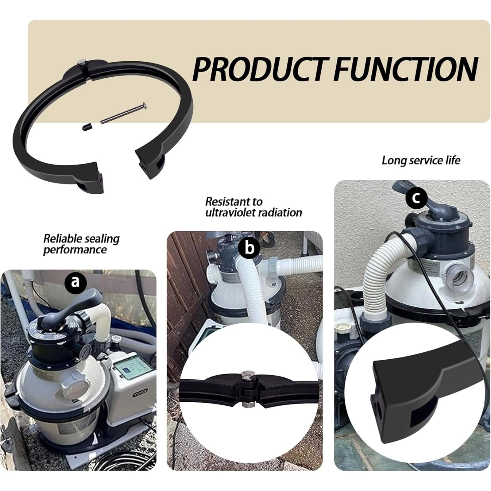Collier SF90110-1 Collier De Serrage Pour Système De Filtre De Piscine SF90110 Joint Torique Filtre Piscine Compatibilité précise : spécialement compatible avec les systèmes de pompe à filtre à sable de 25,4 cm. Pièces Intex - Bague de serrage pour Entrée d'Air - 111746D Collier de serrage pour filtre … sable Cristal-flo Les composants conçus avec précision fonctionnent ensemble pour maintenir une pression optimale et éviter tout problème de fuite. Vérifiez toujours que votre modèle a besoin du collier de serrage de rechange SF90110-1 avant d'acheter pour garantir un ajustement et un bon fonctionnement pour votre équipement de filtration spécifique. Collier de serrage 3 filets de filtre MONARCH Propure - H2o Piscines & Spas Matériel en acier inoxydable inclus. *Matériaux : plastique et métal. * Numéro de pièce : SF90110-1., Couleur : noir. 2 écrous en acier inoxydable. * Compatibilité : pour collier de serrage Intex SF90110-1 pour anneau, pompe à filtre à sable ForIntex de 25,4 cm Nombre de pièces : 1 lot. Matériaux de haute qualité : fabriquée à partir de plastique robuste et de composants métalliques avec une finition noire, cette pince de pompe à filtre est conçue pour résister aux produits chimiques de piscine et à une utilisation régulière. Suivez simplement la procédure d'installation standard pour une installation rapide et sans tracas, pour que votre système de filtration de piscine retrouve son état de fonctionnement en quelques minutes. * Dimensions : environ 34 x 27 x 28 x 25 cm.