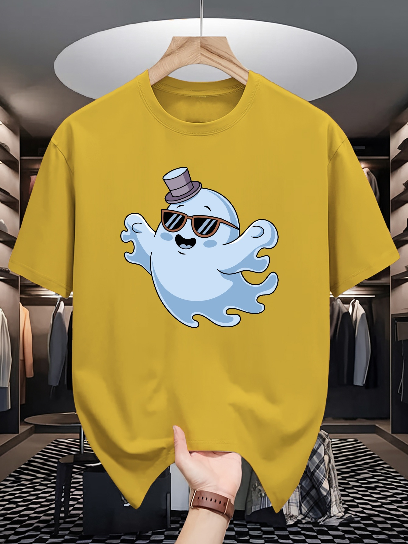 T-shirt Halloween - T-shirt Col Rond Imprimé Graphique Fantôme - Lavable en Machine, Tissu Micro Extensible, Design Cartoon avec Chapeau de Sorcière Citrouille, Idéal pour Adolescents de Moins de 14 Ans, Tenue Tee Shirt Femme Manche Courte XSIDE T-shirt Pour Hommes En Jersey à Motifs à Col Rond -S5EG91Z8-SXJ Tee Shirt Manches Courtes Profitez du confort tout au long de la journée avec ces chemises légères. Décontracté et tendance T-shirt décontracté à manches courtes respirant pour hommes - mélange de polyester léger d'été stretch, col rond, lavage machine, design bicolore avec détails de logo