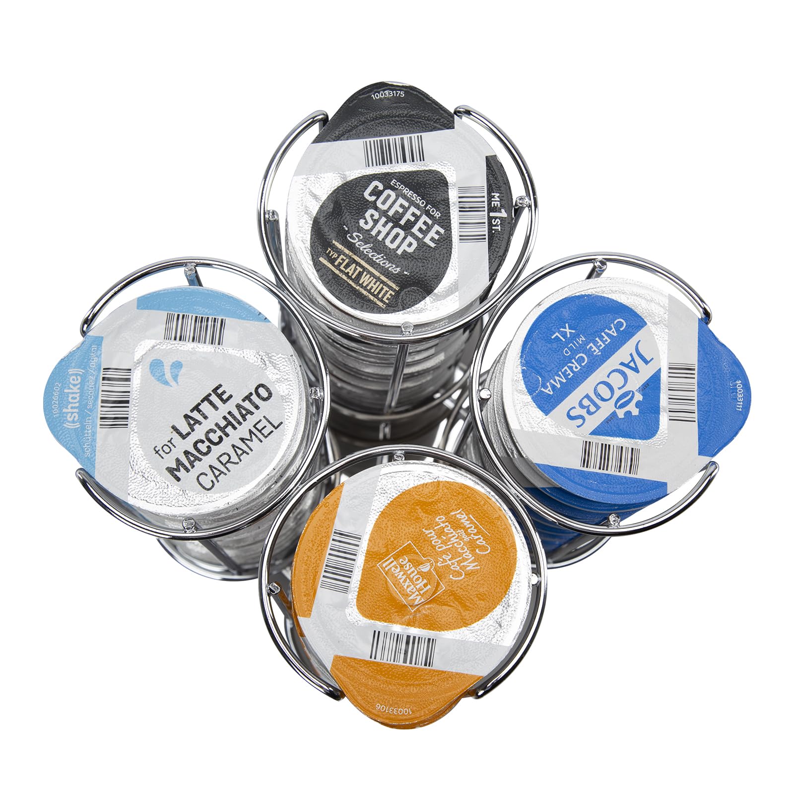 Construction résistante à la rouille : cette étagère de rangement innovante pour le café pour la cuisine est fabriquée en fils métalliques solides. Ce petit accessoire de l'art de la table vous permet de stocker vos capsules de café de différentes marques et saveurs de manière ordonnée. Disponible en différents modèles et capacités, le support capsules de café s'intègre parfaitement dans votre cuisine ou sur votre plan de travail Le porte-capsules de café de Quailitas est conçu pour offrir des solutions peu encombrantes pour les cuisines des amateurs de café. La commodité de la rotation : le support de dosettes de café a un style de rotation pivotant. Il améliore l'expérience de préparation du café à la maison. Il tourne rapidement pour vous donner un accès rapide à la bonne capsule de café. Élégant et élégant, le support pivotant pour dosettes de café rend le choix de la capsule de café au bon goût une tâche agréable. Porte-Capsules de café rotatif de Style Simple, su... – Grandado Il vous permet de choisir rapidement la bonne capsule de café aromatisée pour une infusion instantanée. Conçu dans un cadre métallique, ce support de rangement pour café est construit en métal résistant à la rouille, dans une finition chromée. Support pour dosettes de café : le support à dosettes de café est conçu pour vous offrir une solution peu encombrante et pratique pour la cuisine. TEGOVE Porte-capsules pour café, supports pour capsules Tassimo, porte-capsules de café, porte-capsules pour 52 capsules (ne contient pas de capsules de café) support pivotant vertical à 360°, noir Capsule Tassimo Quailitas Support De Capsules De Café [52 Pièces] – Support Accessoire T-Disc Tassimo Pratique Avec une simple base rotative à 360 degrés, le support peut être conservé sur le comptoir de la cuisine.