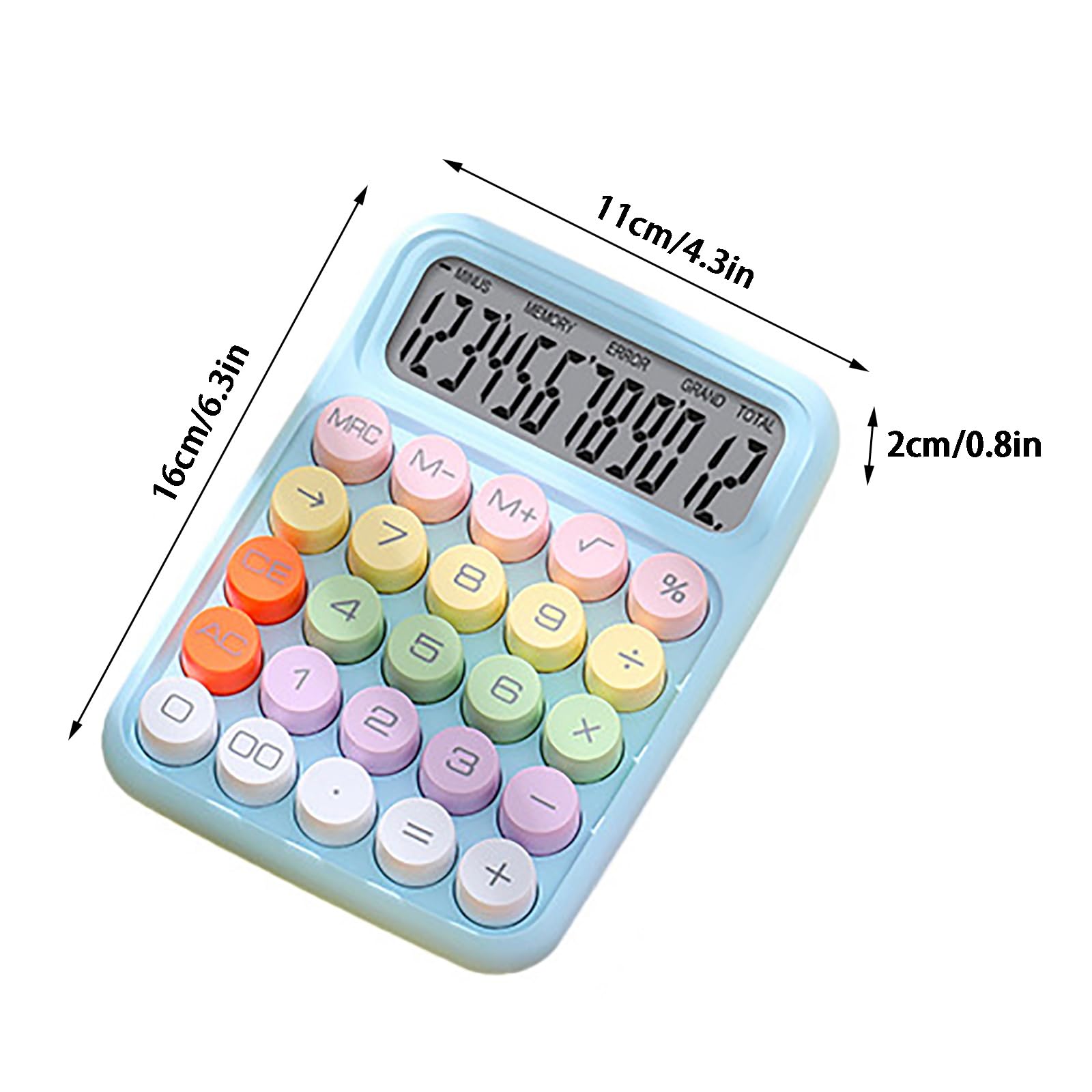 Calculatrice Mécanique LCD 12 Chiffres Mignonne Avec Grand Bouton Calculatrice Touches Rondes Calculatrice Mécanique à 12 Chiffres Avec Grand écran LCD Et Gros Calculatrice 12 Chiffres [Utilisation polyvalente] : que ce soit pour le travail de bureau, les tâches comptables ou les devoirs des étudiants, cette calculatrice est conçue pour répondre à un large éventail de besoins de calcul numérique, offrant une fiabilité de qualité professionnelle. Matériau principal : ABS. Poids du colis : 160 g. Description de Calculatrice mécanique à 12 chiffres avec écran LCD 5 pouces et gros boutons Calculatrice mécanique avancée alimentée par batterie : Fabriquée en ABS et dotée d'un clavier mécanique, notre calculatrice est dotée de gros boutons ronds rétro, tactiles et faciles à utiliser [Grandes touches rondes] : cette calculatrice dispose de grandes touches rondes qui offrent une expérience de frappe confortable et fluide, réduisant le risque d'erreurs lors des calculs. Petite calculatrice de bureau portable à usage général pour la maison, l'école, le bureau ou le magasin qui peut faire des mathématiques générales comme nous, avec une variété de fonctions financières, parfaite pour les adultes et les étudiants [Affichage à 12 chiffres] : avec son affichage clair à 12 chiffres, vous pouvez effectuer de grands calculs facilement, ce qui en fait un outil idéal pour le travail de bureau, la comptabilité ou l'utilisation des étudiants. Alimentation : 1 pile AAA (non incluse).