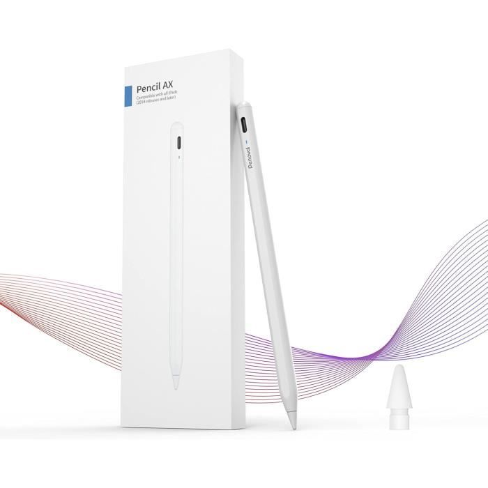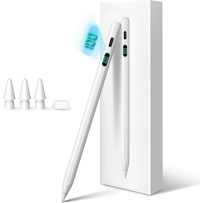 La technologie de charge rapide permet de recharger le stylet en seulement 10 à 15 minutes, répondant ainsi aux besoins d'une utilisation prolongée. Il ne nécessite pas de connexion Bluetooth, il suffit de toucher le sommet du stylet pendant deux secondes pour une mise en marche rapide et simple. Il remplace facilement le doigt pour des opérations détaillées. Conception ergonomique : Vous recevrez un stylet pour iPad accompagné de 3 pointes de rechange. C'est le choix idéal pour tous les utilisateurs d'iPad. Expérience d'écriture de haute précision : La pointe du stylet de 0,1 mm permet une précision exceptionnelle, sans retard, déviation ni interruption. Il remplace facilement le doigt pour des opérations détaillées. La pointe est facilement remplaçable, offrant une écriture fluide et sans latence Stylet iPad 2025: Stylos Tactiles Haute Précision avec Rejet Expérience d'écriture de haute précision : La pointe du stylet de 0,1 mm permet une précision exceptionnelle, sans retard, déviation ni interruption. Conçu spécialement pour l’écriture, le dessin et la navigation sur iPad, il garantit une expérience d’utilisation fluide et réactive. La pointe est facilement remplaçable, offrant une écriture fluide et sans latence. Compatibilité des appareils : Ce stylet pour iPad est compatible avec les modèles suivants de l’iPad à partir de 2018 : iPad 6, iPad 7, iPad 8, iPad 9, iPad 10, iPad mini 5, iPad mini 6, iPad Air 3, iPad Air 4, iPad Air 5, iPad Pro 2, iPad Pro 3, iPad Pro 4, iPad Pro 5, iPad Pro 6., Remarque : Ce stylo iPad n'est pas compatible avec les modèles d’iPad antérieurs à 2018, ni avec les appareils iPhone, Android et Windows. Stylet Stylet IPad, Pencil IPad, Stylo Pour IPad (2018-2024) Stylet Avec Ipad A16 Stylet pour iPad 2018 – 2025, avec Charge rapide, crayon actif à rejet de paume, pour iPad mini 6 Air 4/5 Pro 11/12.9 pouces 6/5/4/3ème Caractéristiques : Couleur : Blanc Contenu de l'emballage : 1 stylet, 3 pointes de rechange Conseils d'utilisation : Vérification avant utilisation : Avant d'utiliser le stylet pour iPad, assurez-vous que la batterie est suffisamment chargée pour garantir une utilisation fluide. Il procure une sensation fluide et naturelle, idéale pour la création artistique, la prise de notes manuscrites, ainsi que pour toutes sortes d'opérations quotidiennes. Éviter les chocs violents : Évitez que le stylo iPad subisse des chocs violents ou des chutes pour éviter d'endommager les composants internes. Ce stylet iPad est conçu spécialement pour les modèles d'iPad de 2018 à 2024, compatible avec une large gamme de modèles tels que l'iPad 6 et versions supérieures, iPad mini 5 et versions ultérieures, iPad Air 3 et versions supérieures, ainsi que l'iPad Pro 3 et versions ultérieures, offrant une grande compatibilité. Ce stylet Apple améliore non seulement l'expérience d'utilisation de votre iPad, mais il la rend aussi plus efficace et pratique, que ce soit pour l'apprentissage, le travail ou la création. Une fois chargé, il offre une longue autonomie, adapté à divers scénarios en déplacement.