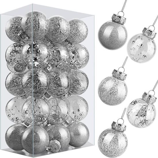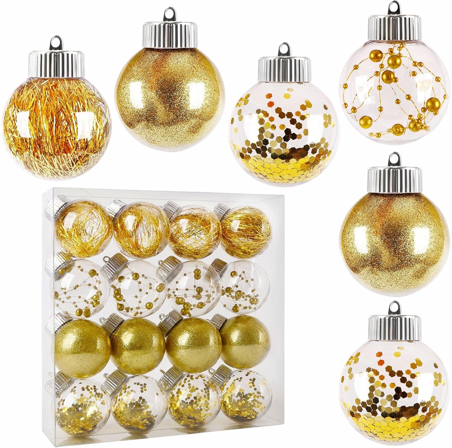 Belle décoration de Noël : 16 boules de Noël dans des motifs de Noël uniques. · Taille idéale de l'ornement 🎄Boule de Noël Transparente : Boules de décoration à suspendre fabriquée en plastique, la coque est imperméable, transparente, sans couture, légère, solide et difficile à déformer, n'endommage pas les branches du sapin de Noël, la surface est lisse sûres et non cassantes, boules remplir et décorer, convient pour diverses décorations de style festif. Boules Noel Gold Dorée Decoration Sapin De Noel,ilauke 6cm Boules De Noël Transparente,16 Boules De Arbres De Noël Ornement,Boule En Plastique Remplissable Transparente,Boule Ornement De Sapin à Suspendre Pour DIY(Or Deco De Boule d'arbre de Noël Boule plastique incassable robuste empêche les boules de se briser comme peuvent le faire les boules de verre délicates, ce qui signifie qu'elles durent beaucoup plus longtemps et ressorties année après année. 🎄Boules en Plastique Transparentes DIY : Cet ensemble de 6cm boules de Noël transparentes acryliques peut être rempli de neige artificielle, de petites baies, d'aiguilles de pin, de feuilles de sapin, de feuilles de cèdre, de mini pommes de pin, de feuilles vertes et de branches pour des décorations de Noël miniatures et des scènes de neige. 🎄Large Applications : Boules de sapin de Noël ornement sont idéaux comme décorations pour la maison, décorations pour arbres de Noël, décorations de table pour ajouter du confort à la maison et créer une atmosphère chaleureuse de vacances. Ilauke Étoile pour Sapin de Noël Arbre Topper Décoration,Chatoyant Exquis Topper Arbre Étoile... 16 pcs Boule Transparente Remplissable, 6cm Boules de Noël Que ce soit en plein soleil ou par temps hivernal glacial, vos décorations de Noël brilleront à l'intérieur et à l'extérieur, après les vacances, vous pouvez facilement ranger toutes vos boules préférées dans la boîte de rangement transparente pratique. 🎄Facile à Remplir : Les boule d'arbre de Noël ont un couvercle argenté amovible conception rotative, est équipé d'une corde qui peut être facilement suspendue pour un réglage pratique de la longueur pour répondre à vos nombreux besoins. Boules de Sapin de Noël Boule de décoration sont fabriquées en plastique de qualité alimentaire avec longue durée, ne se décolore pas et ne se déforme pas, boules de Noël combinent la beauté et la brillance du verre véritable avec la praticité indestructible.