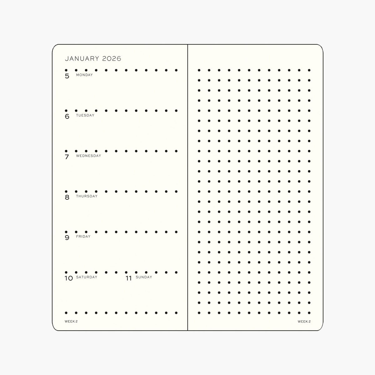 Cuaderno Leuchtturm1917 Some Lines A Day Rising Sun Leuchtturm Daily Planner Leuchtturm1917 Săptămânal Agenda 2026 12.5x19cm | Romania Agenda Journalier 2026 Leuchtturm1917 Avec fermeture élastique et 2 marque-pages, pochette pliable dans la couverture et étiquettes de titre et de dos pour écrire et archiver., Dimensions : 145 x 210 mm Chaque jour est au centre de l'attention. Ainsi, dans le calendrier journalier, non seulement les activités professionnelles ou scolaires trouvent l'espace dont elles ont besoin, mais aussi les loisirs, les événements du soir et les notes. L’agenda Semainier & Note Ligné 2026 de LEUCHTTURM1917, ici décliné en Rising Sun au format Medium (A5) avec couverture rigide (Hardcover), combine intelligemment planification hebdomadaire et prise de notes Agenda journalier de 12 mois (du 1er janvier 2026 au 31 décembre 2026) au format moyen (A5) avec couverture rigide. L'agenda Journalier Pointillé 2026 de LEUCHTTURM1917, ici décliné en Rising Sun au format Medium (A5) avec couverture rigide (Hardcover), allie liberté d'usage et structure quotidienne pour accompagner votre organisation tout au long de l'année Une page entière pour chaque jour de la semaine, y compris les samedis et dimanches, est affichée dans notre agenda quotidien sur une page séparée. L'agenda journalier offre une page complète pour chaque nouveau jour de la semaine et offre suffisamment d'espace pour une planification quotidienne détaillée.