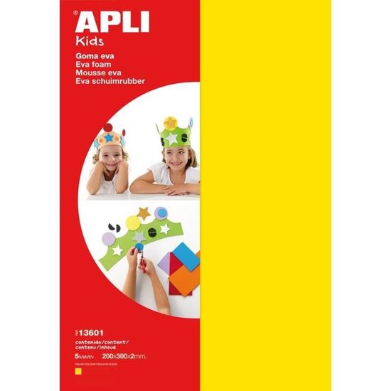 Elle sont à la fois souples, faciles à découper, à coller et à dessiner. Pochette de mousse EVA fluo format A4 (210 x 297 mm) et épaisseur 2 mm de diverses couleurs : fuchsia, vert, jaune et orange. Les feuilles de mousse EVA sont idéales pour une activité à la maison ou à l'école. Loisirs Créatifs école APLI Pochette De 10 Feuilles Carton - Ondulé Couleurs Assorties (Lot De Plaque De Mousse à Découper APLI 13556 - Pochette de 10 feuilles de mousse en caoutchouc EVA - Couleur: Jaune, rose, vert et orange fluo - Dimensions: 210x297x2mm Pochette de mousse EVA fluo format A4 (210 x 297 mm) et paisseur 2 mm de diverses couleurs : fuchsia, vert, jaune et orange Mousse caoutchouc flexible, facile à couper et coller. 4 couleurs assorties : Vert, jaune, orange, rose. Sans danger pour les enfants : produit conforme norme EN71. Peut se peindre avec tout type de peinture. Type de produit :Feuille en caoutchouc-mousse Référence :AGI-013556 ApliMarque : Apli Référence fabricant :13556 Stock : Aucun article disponible Rupture de stock... APLI Kids Mousse EVA Bleu A4 | Kids Made